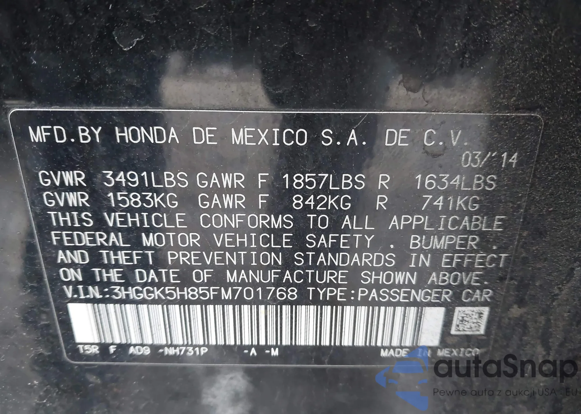 VIN: 3HGGK5H85FM701768