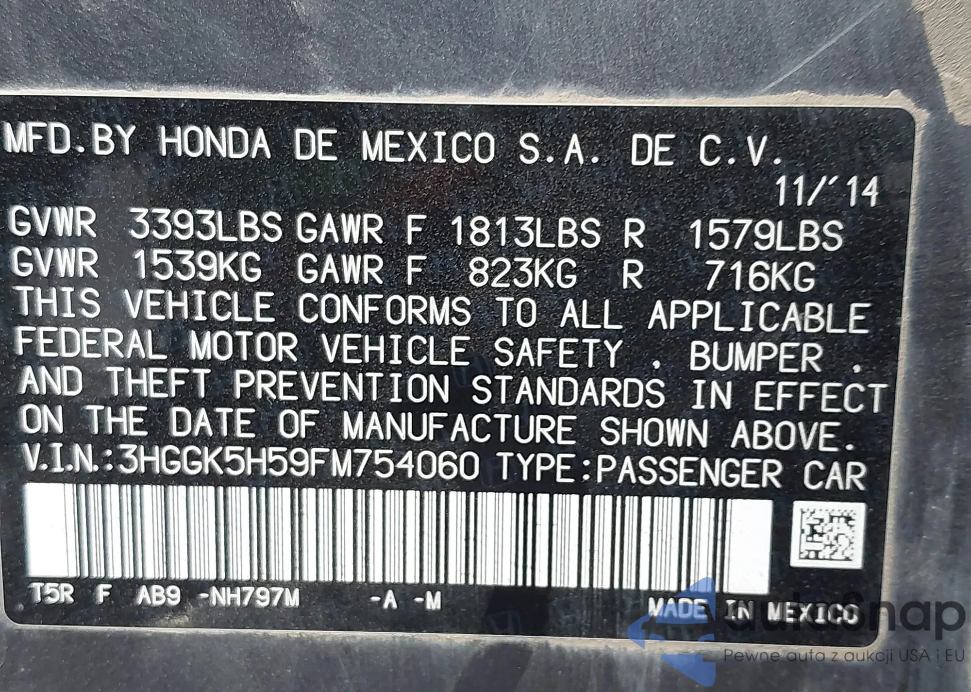 VIN: 3HGGK5H59FM754060