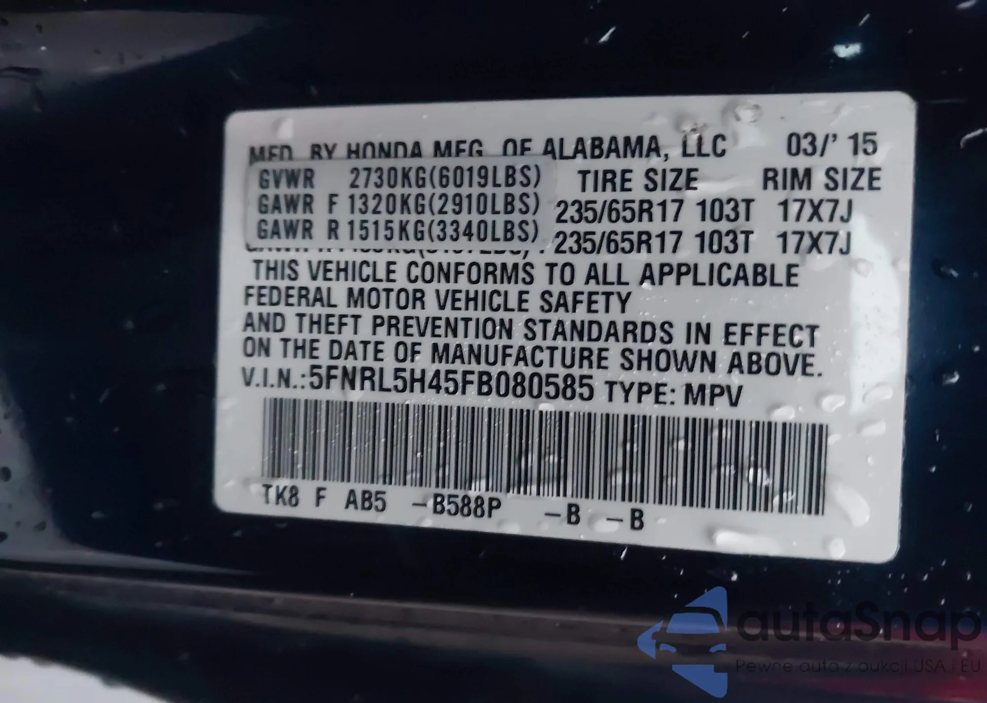 VIN: 5FNRL5H45FB080585