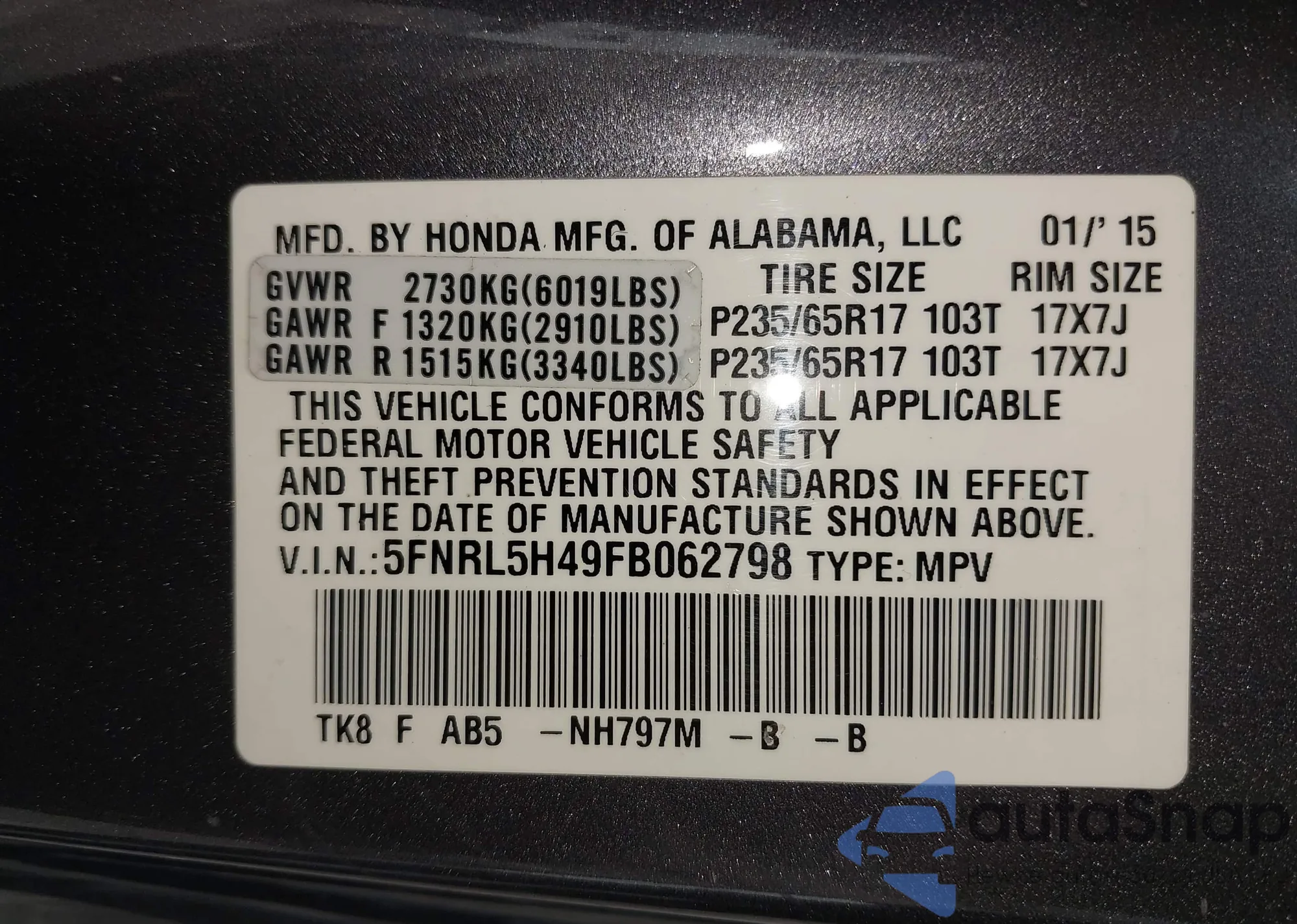 VIN: 5FNRL5H49FB062798
