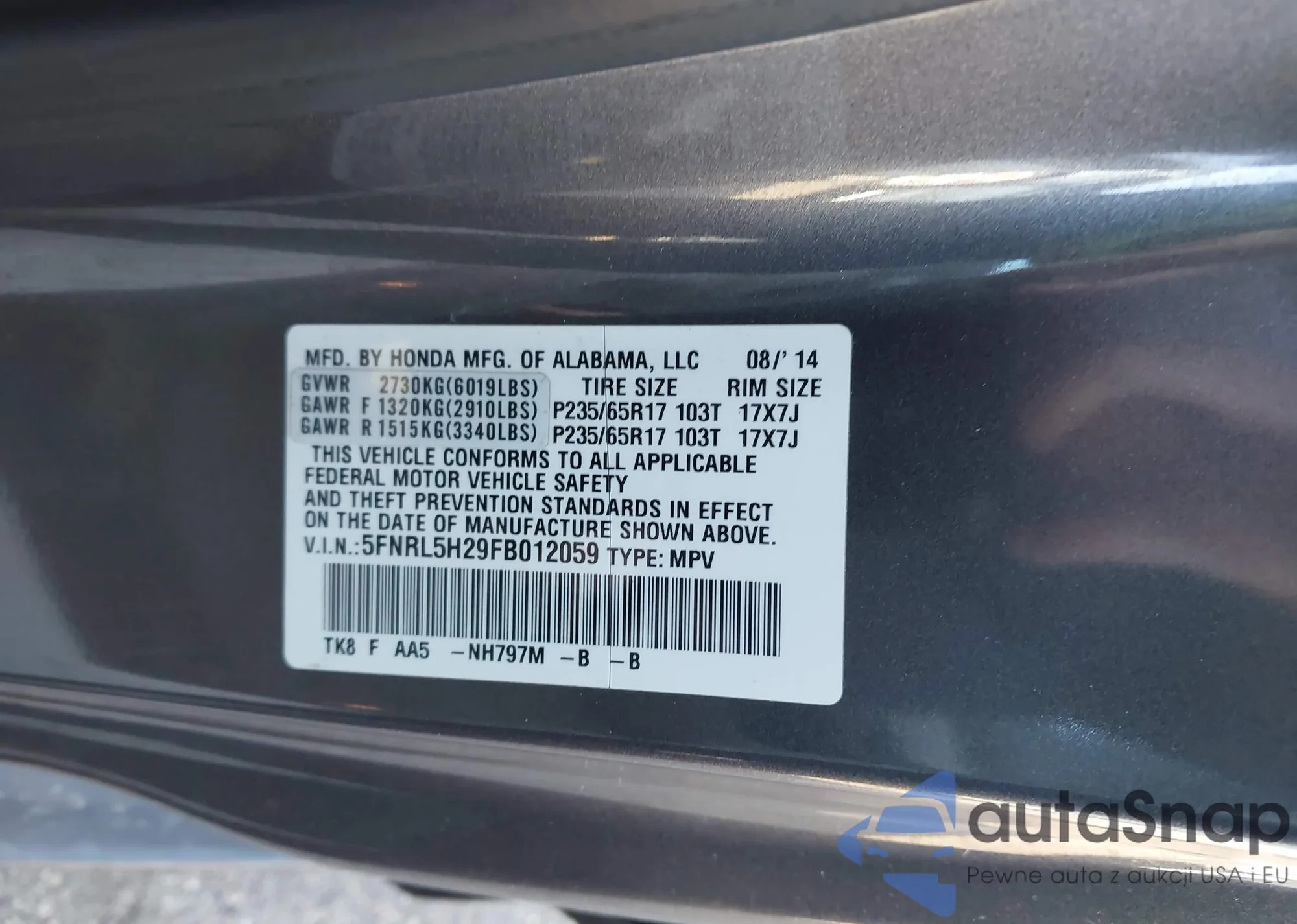 VIN: 5FNRL5H29FB012059