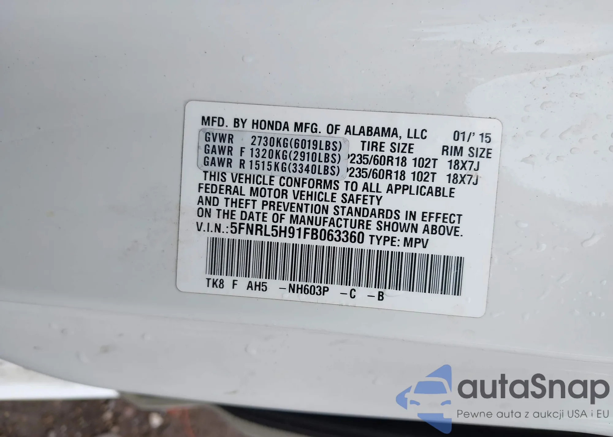 VIN: 5FNRL5H91FB063360