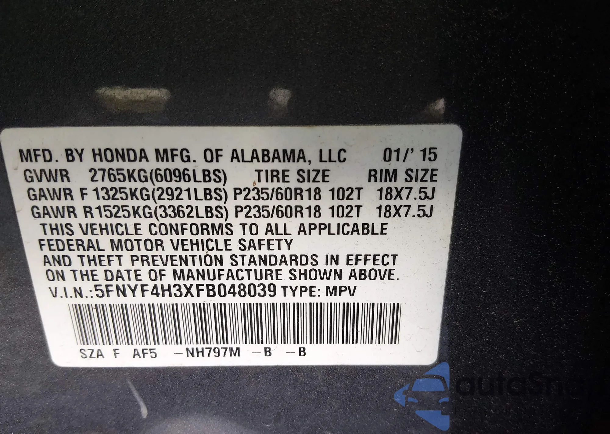 VIN: 5FNYF4H3XFB048039