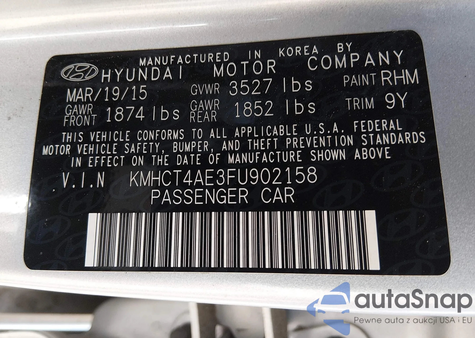 The car Hyundai Accent 2015 (VIN KMHCT4AE3FU902158) is sold by an unverified seller. We recommend checking the Carfax report and confirming registration possibilities before purchase.
