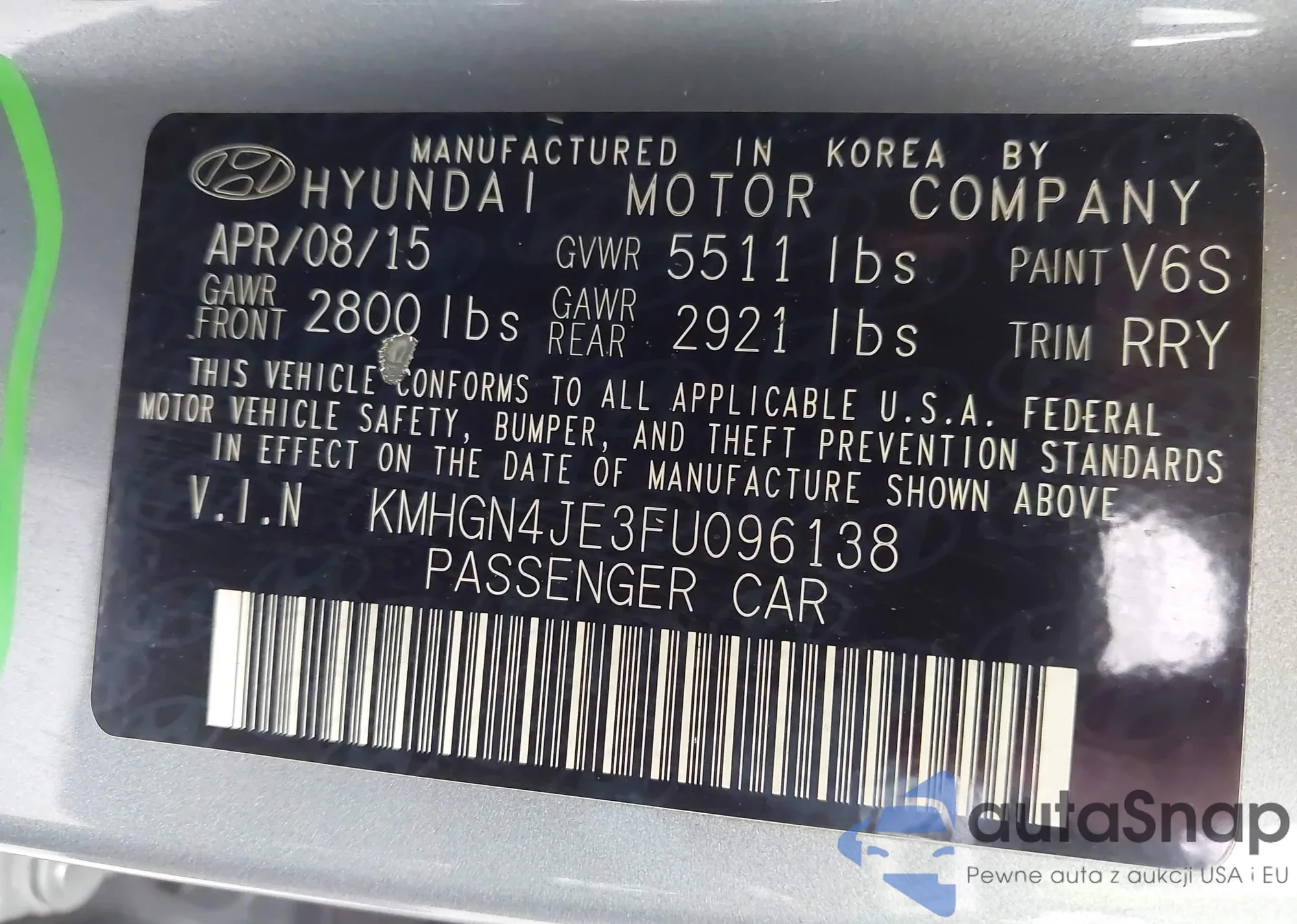 VIN: KMHGN4JE3FU096138