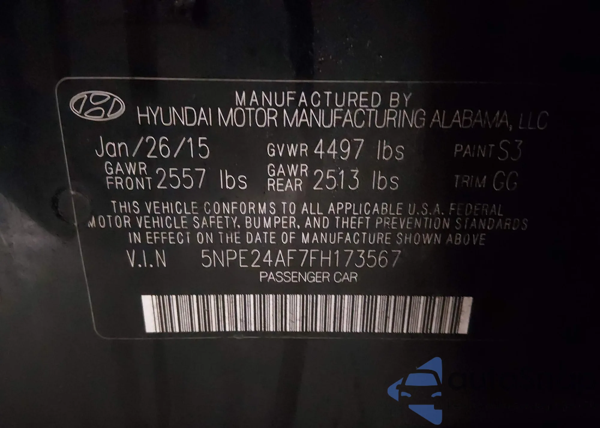 VIN: 5NPE24AF7FH173567
