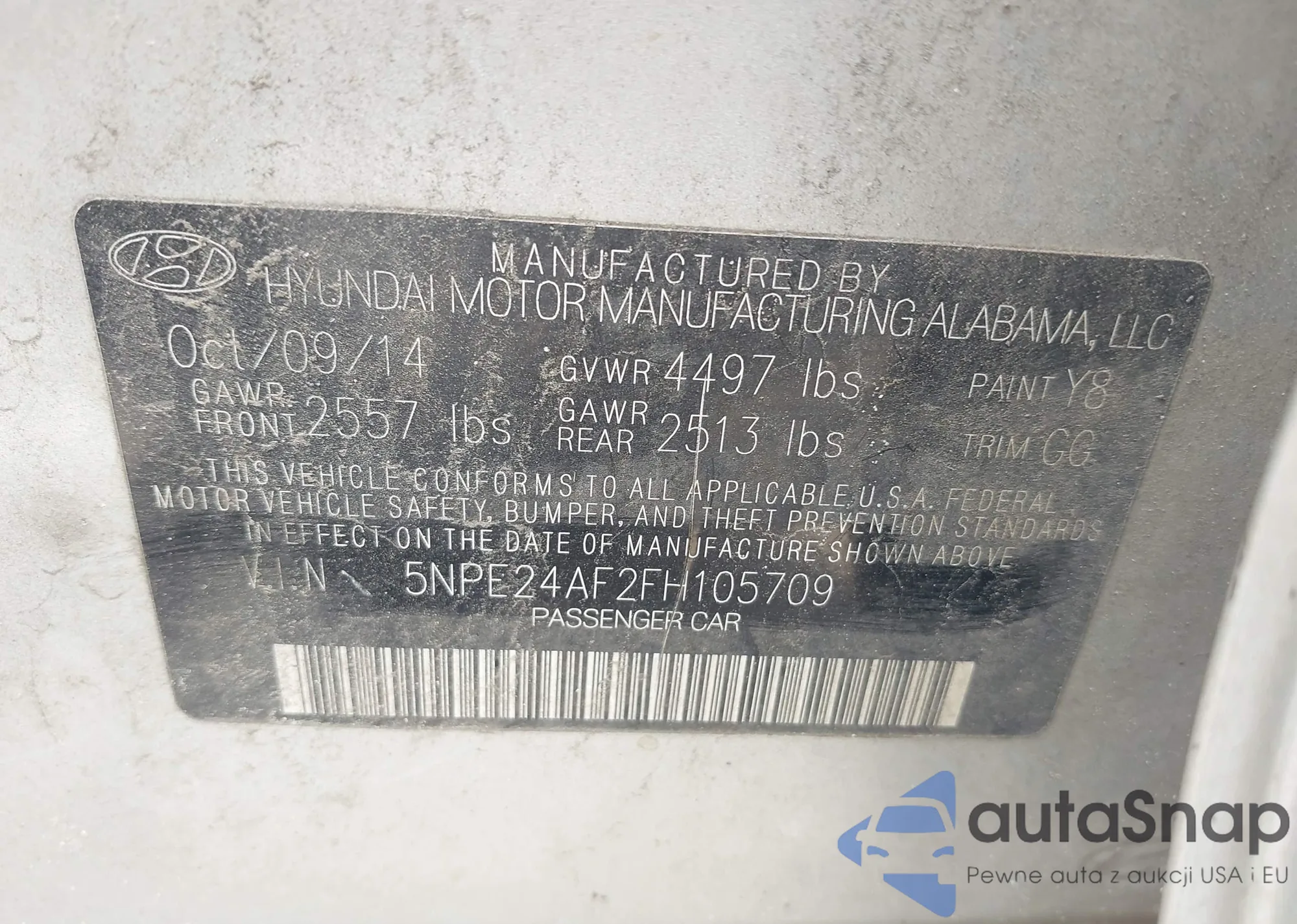 VIN: 5NPE24AF2FH105709