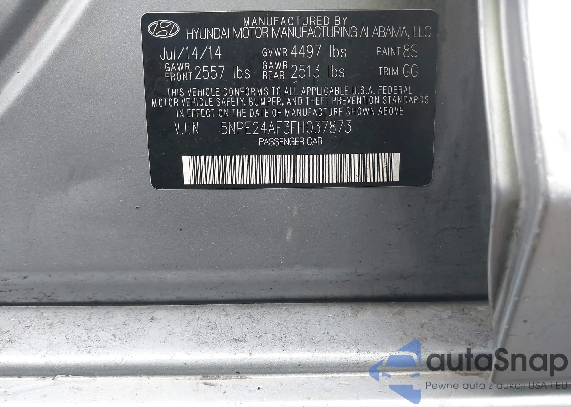 VIN: 5NPE24AF3FH037873
