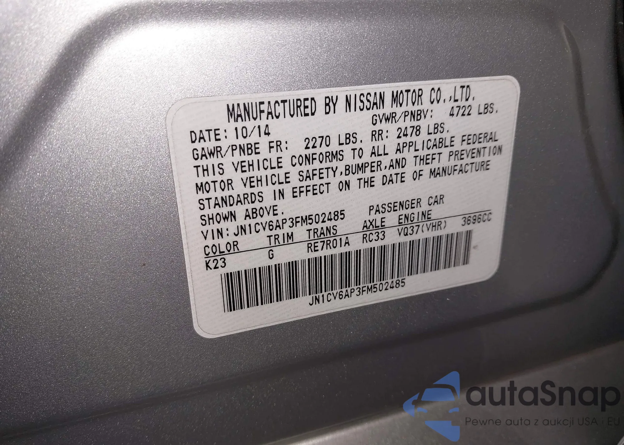 VIN: JN1CV6AP3FM502485