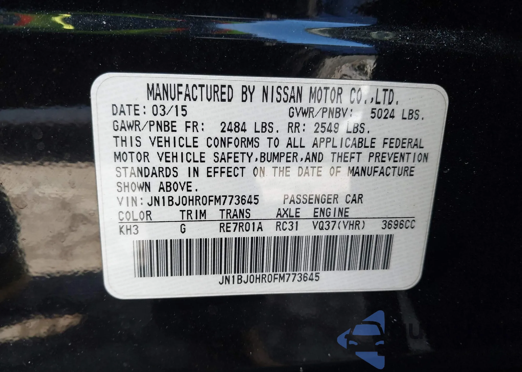 • VIN: JN1BJ0HR0FM773645