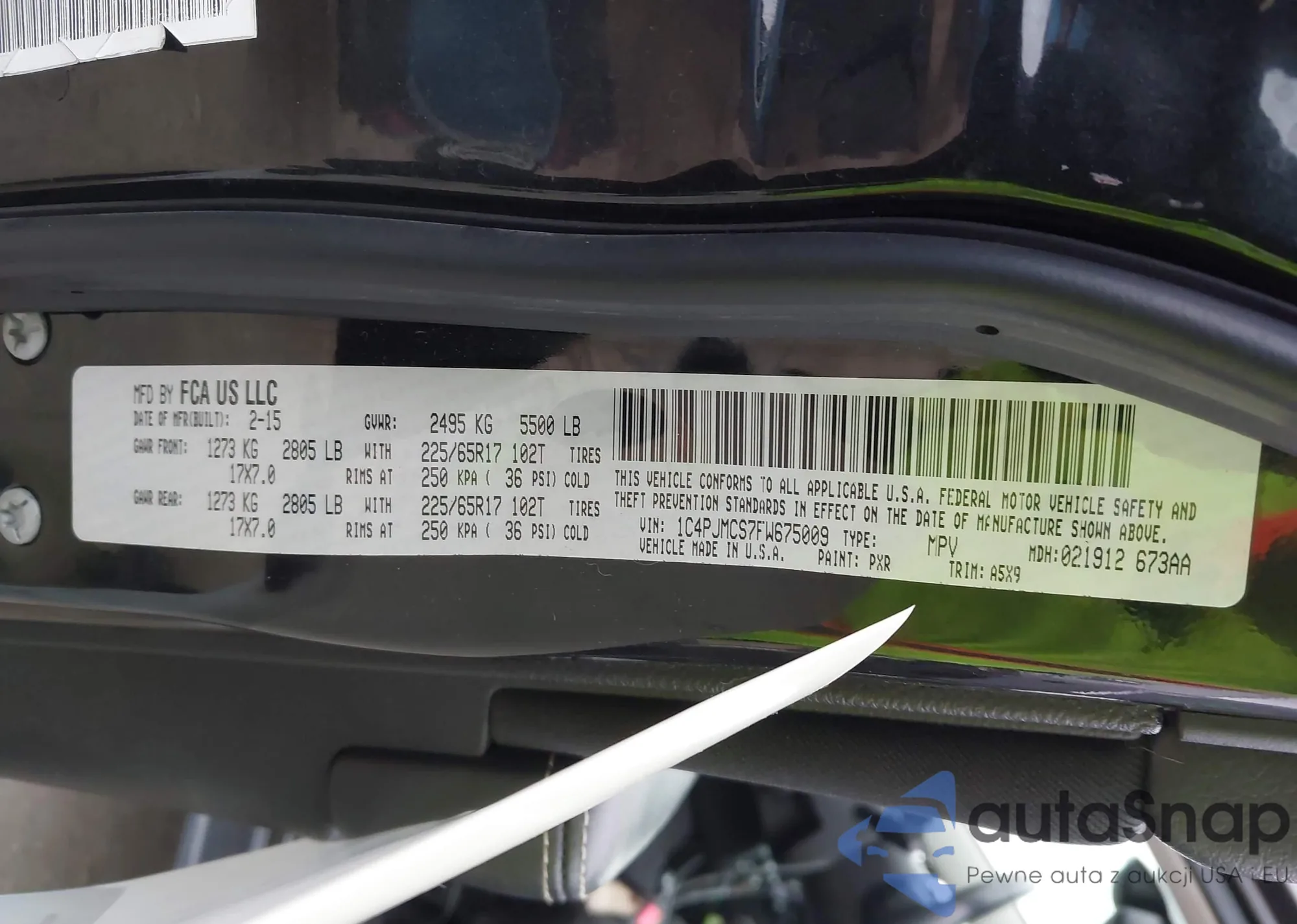 The car Jeep Cherokee 2015 (VIN 1C4PJMCS7FW675009) has not been auctioned before. The documents are clean, and the mileage matches or is below the market average. Sold by an insurance company – we recommend purchase. Delivery to the port will take approx. 6–8 weeks.