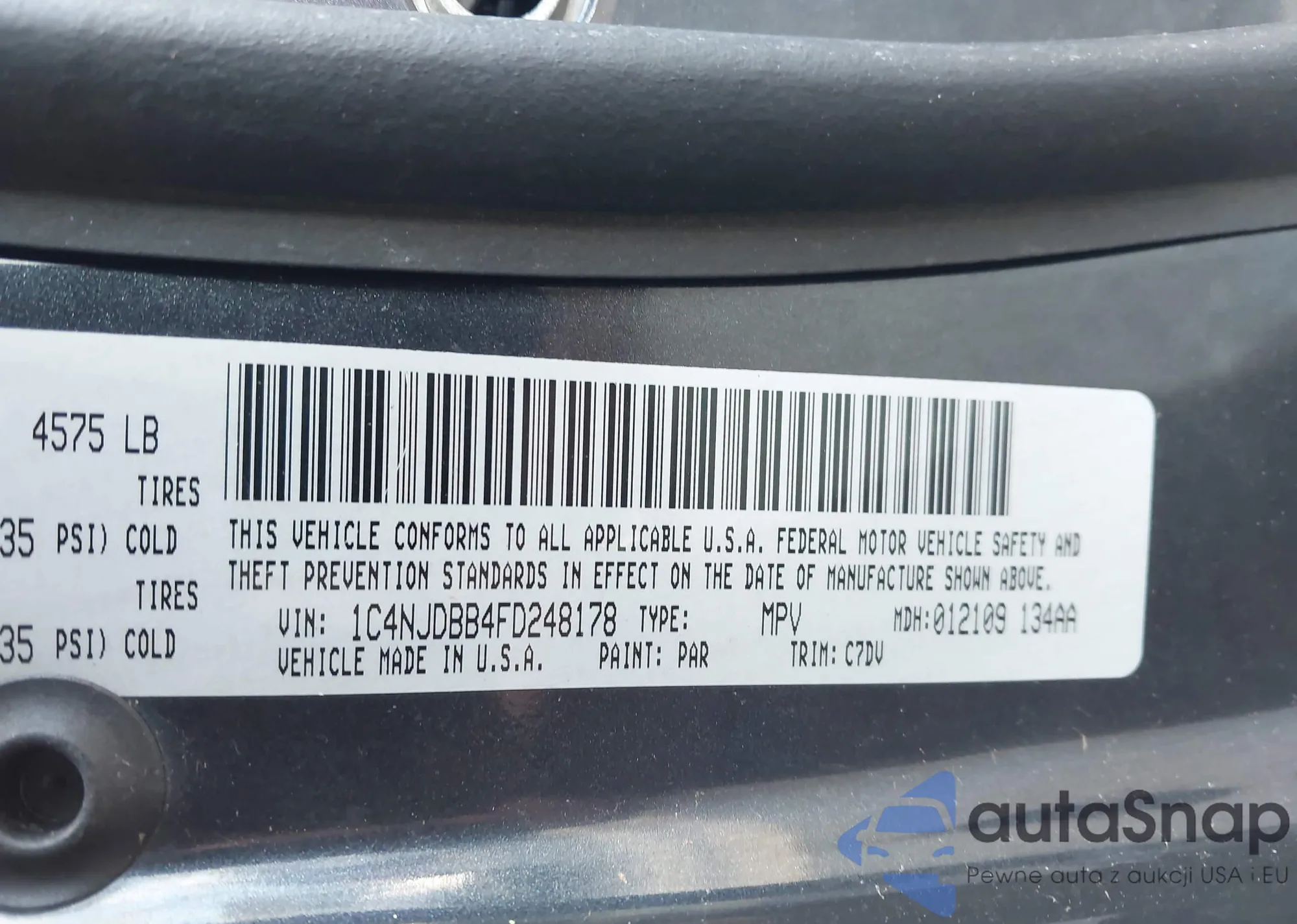 The car Jeep Compass 2015 (VIN 1C4NJDBB4FD248178) has not been auctioned before. The documents are clean, and the mileage matches or is below the market average. Sold by an insurance company – we recommend purchase. Delivery to the port will take approx. 6–8 weeks.