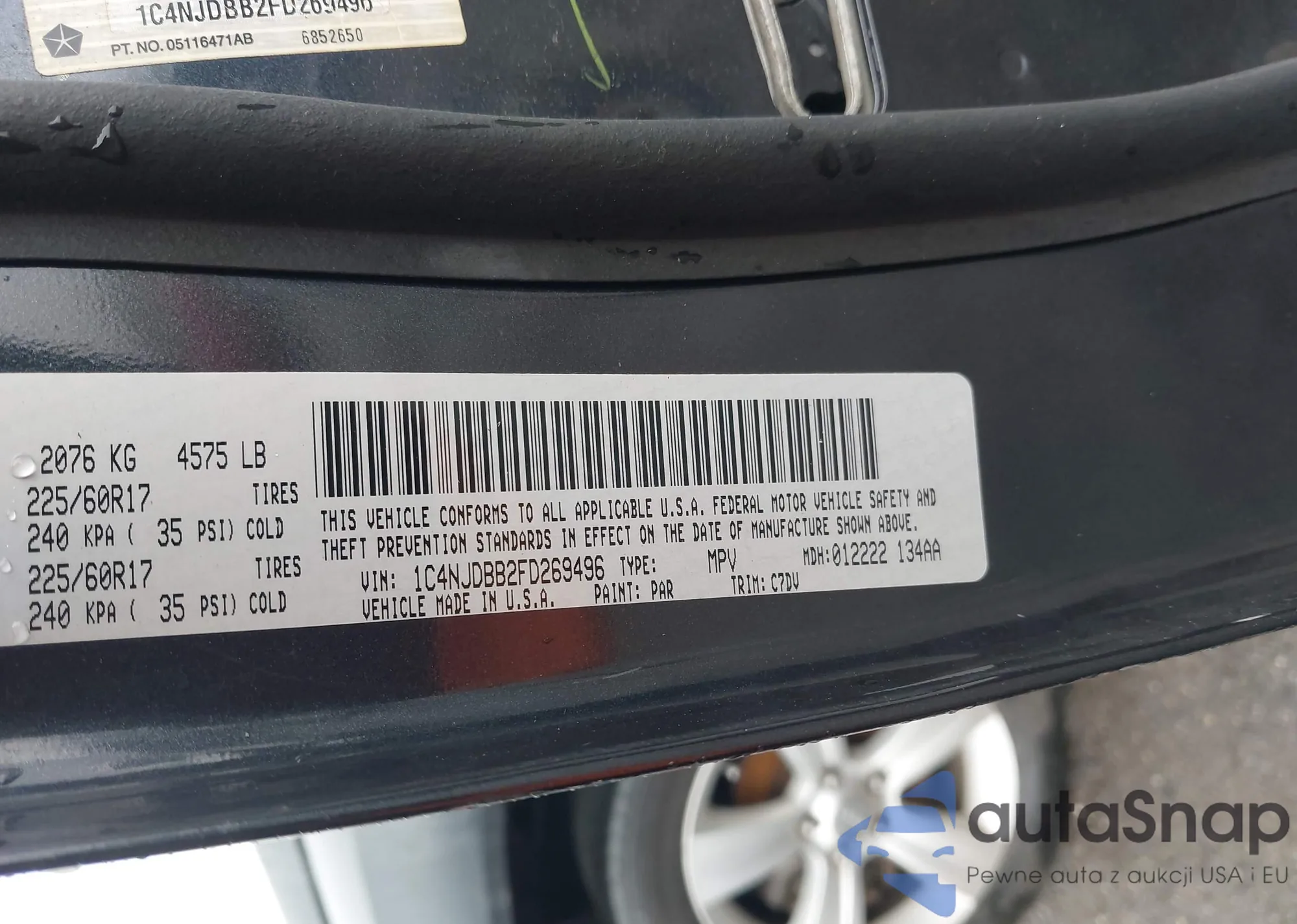 The car Jeep Compass 2015 (VIN 1C4NJDBB2FD269496) is sold by an unverified seller. We recommend checking the Carfax report and confirming registration possibilities before purchase.