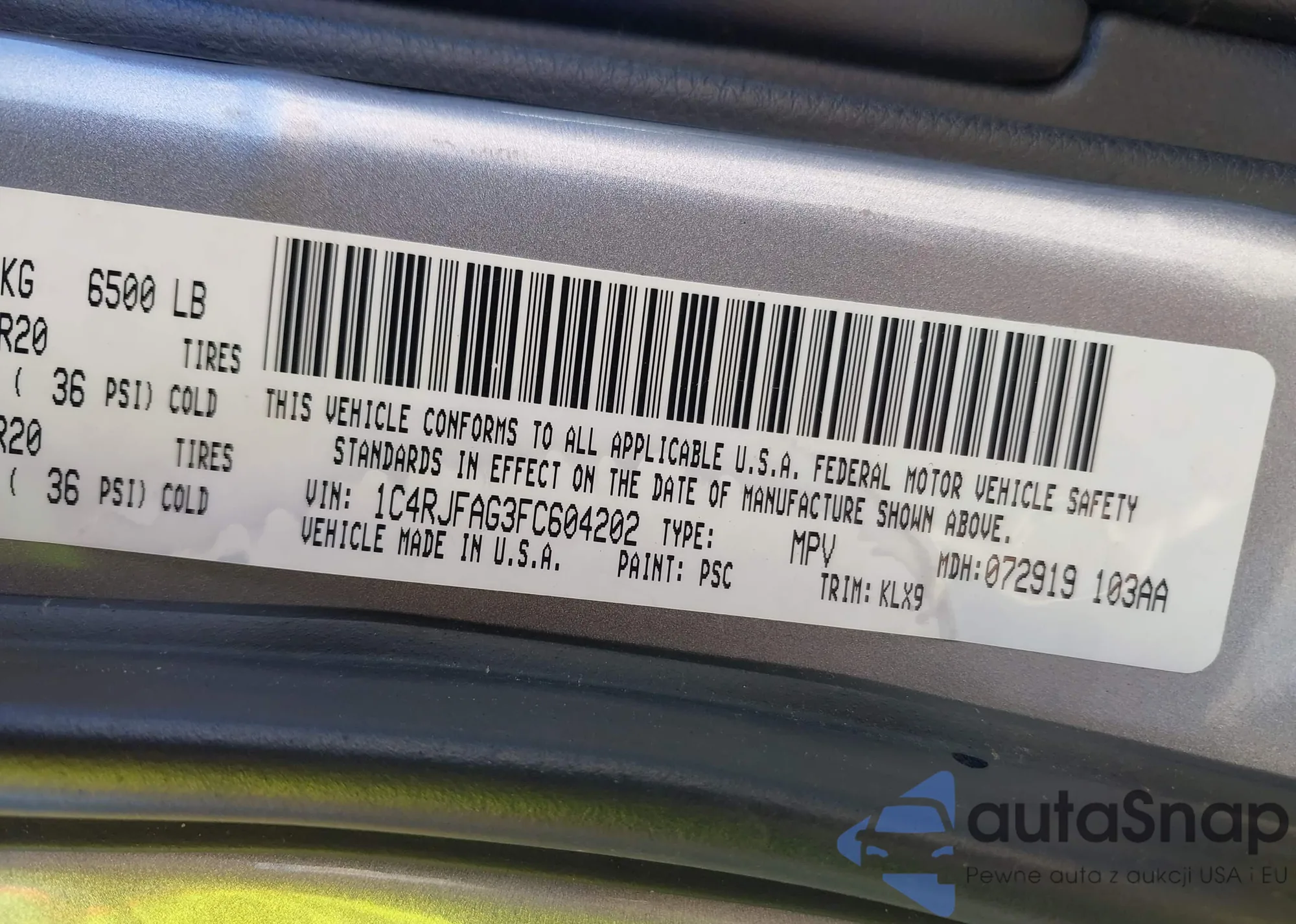 The car Jeep Grand Cherokee 2015 (VIN 1C4RJFAG3FC604202) has not been auctioned before. The documents are clean, and the mileage matches or is below the market average. Sold by an insurance company – we recommend purchase. Delivery to the port will take approx. 6–8 weeks.