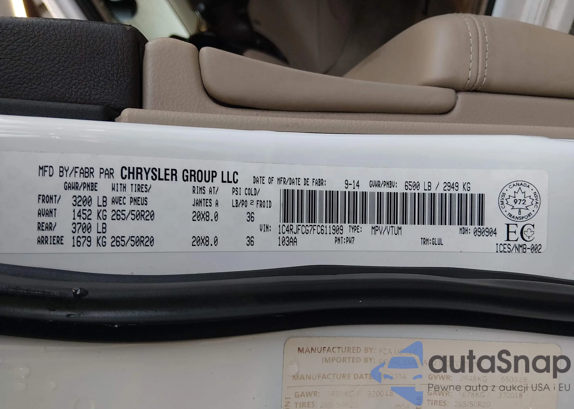 VIN: 1C4RJFCG7FC611909