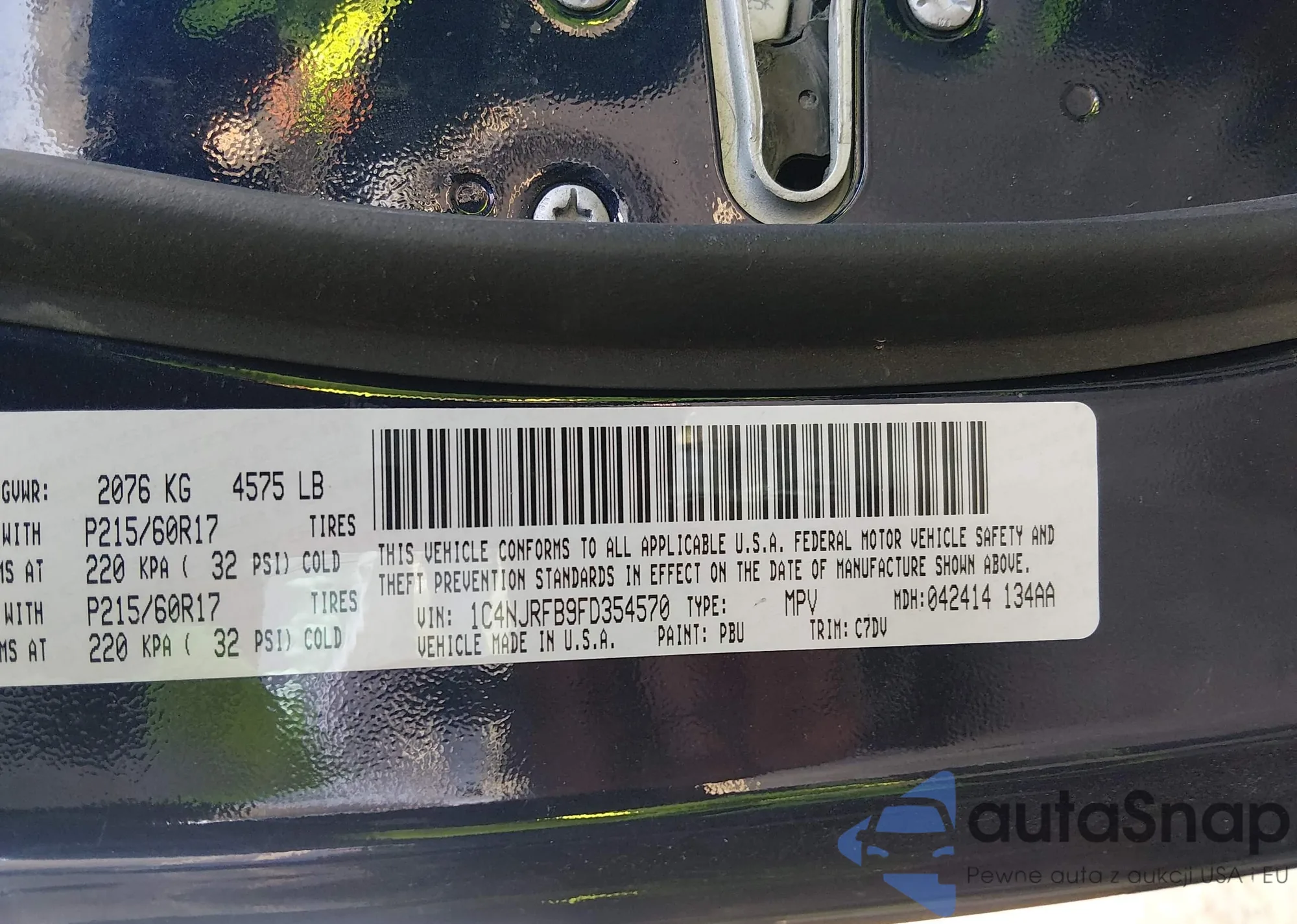 The car Jeep Liberty (Patriot) 2015 (VIN 1C4NJRFB9FD354570) has not been auctioned before. The documents are clean, and the mileage matches or is below the market average. Sold by an insurance company – we recommend purchase. Delivery to the port will take approx. 6–8 weeks.