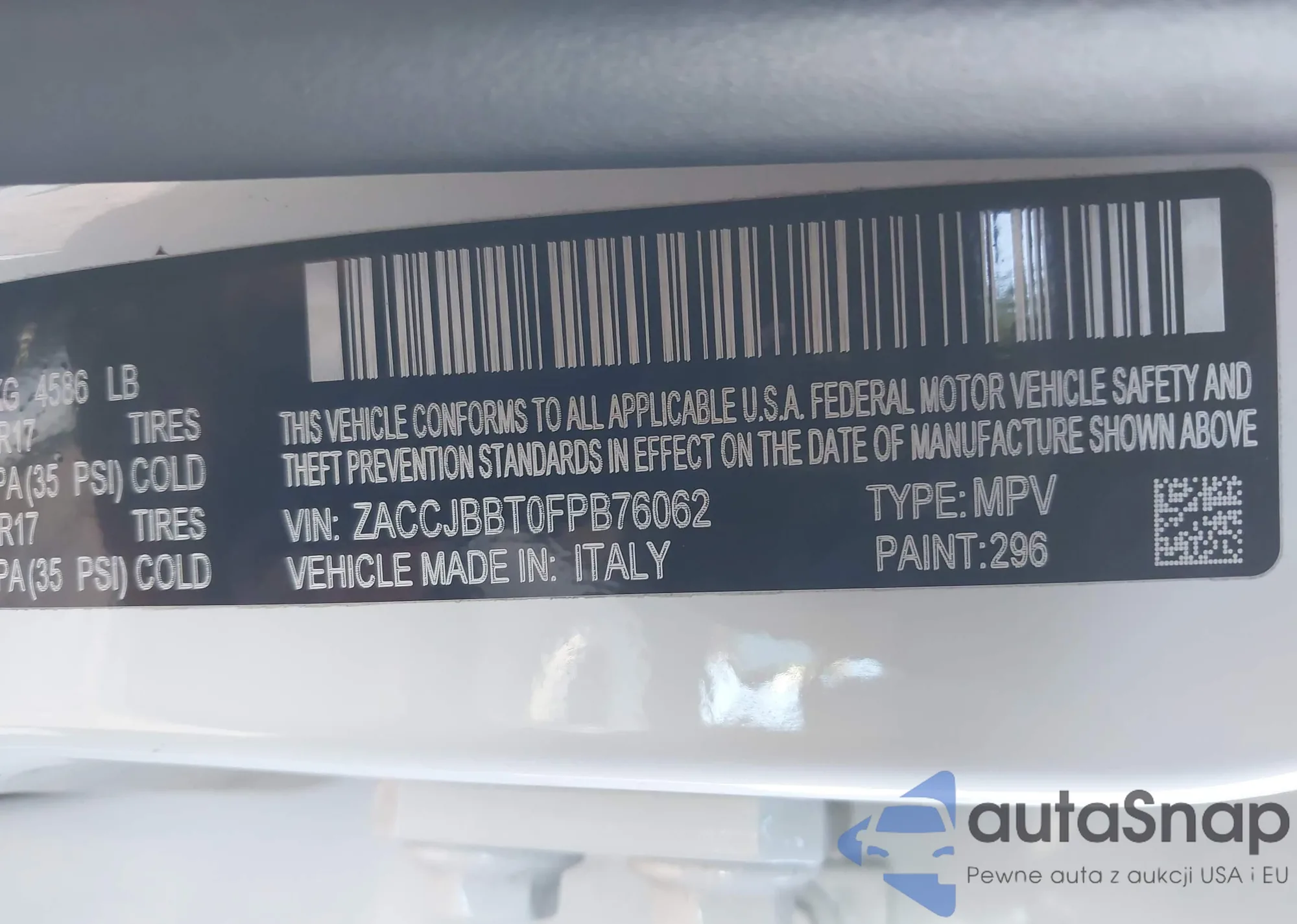 The car Jeep Renegade 2015 (VIN ZACCJBBT0FPB76062) has not been auctioned before. The documents are clean, and the mileage matches or is below the market average. Sold by an insurance company – we recommend purchase. Delivery to the port will take approx. 6–8 weeks.