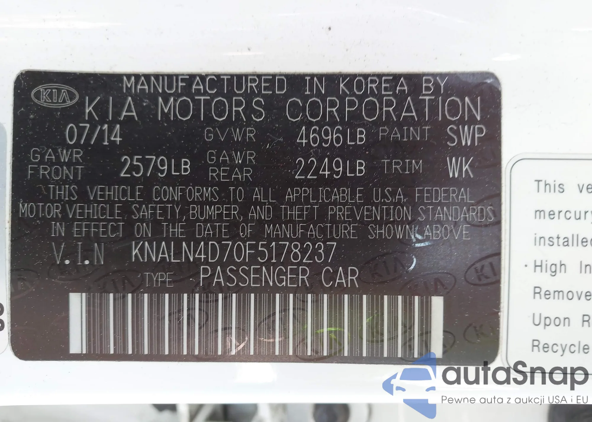 VIN: KNALN4D70F5178237