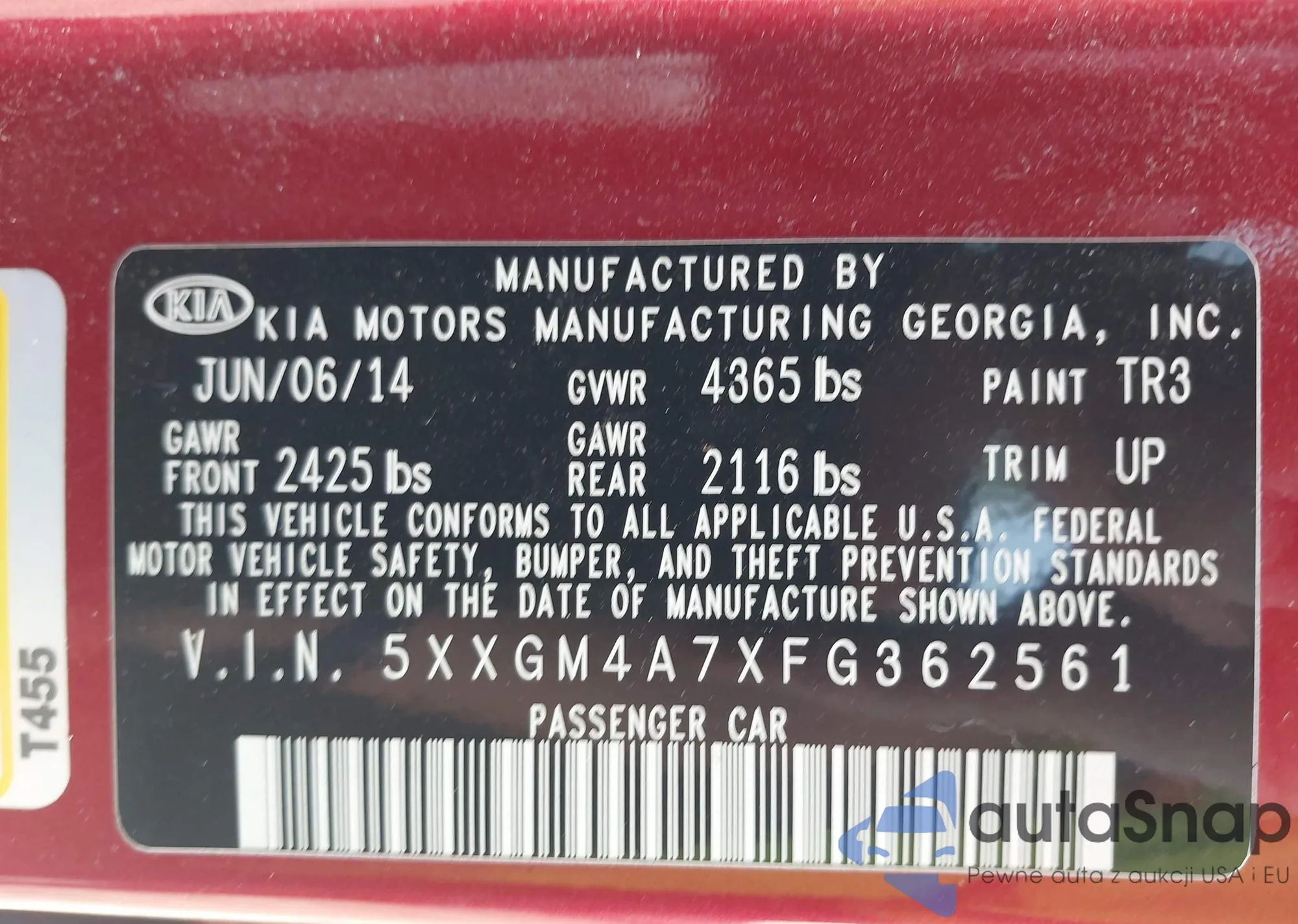 The car Kia Optima 2015 (VIN 5XXGM4A7XFG362561) has not been auctioned before. The documents are clean, and the mileage matches or is below the market average. Sold by an insurance company – we recommend purchase. Delivery to the port will take approx. 6–8 weeks.