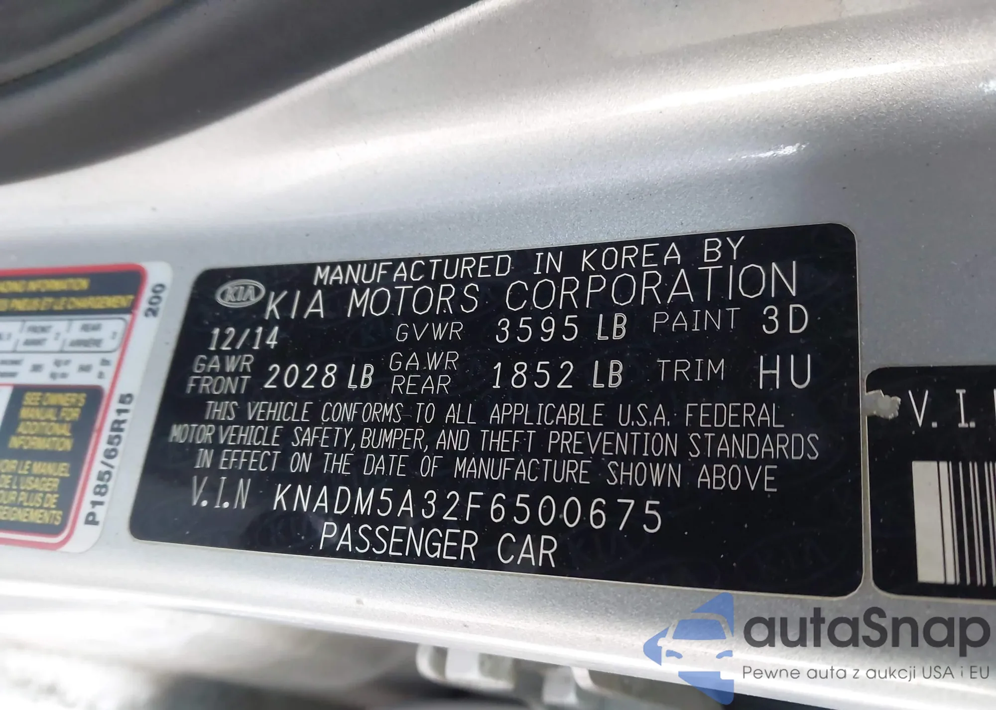 The car Kia Rio 2015 (VIN KNADM5A32F6500675) has not been auctioned before. The documents are clean, and the mileage matches or is below the market average. Sold by an insurance company – we recommend purchase. Delivery to the port will take approx. 6–8 weeks.