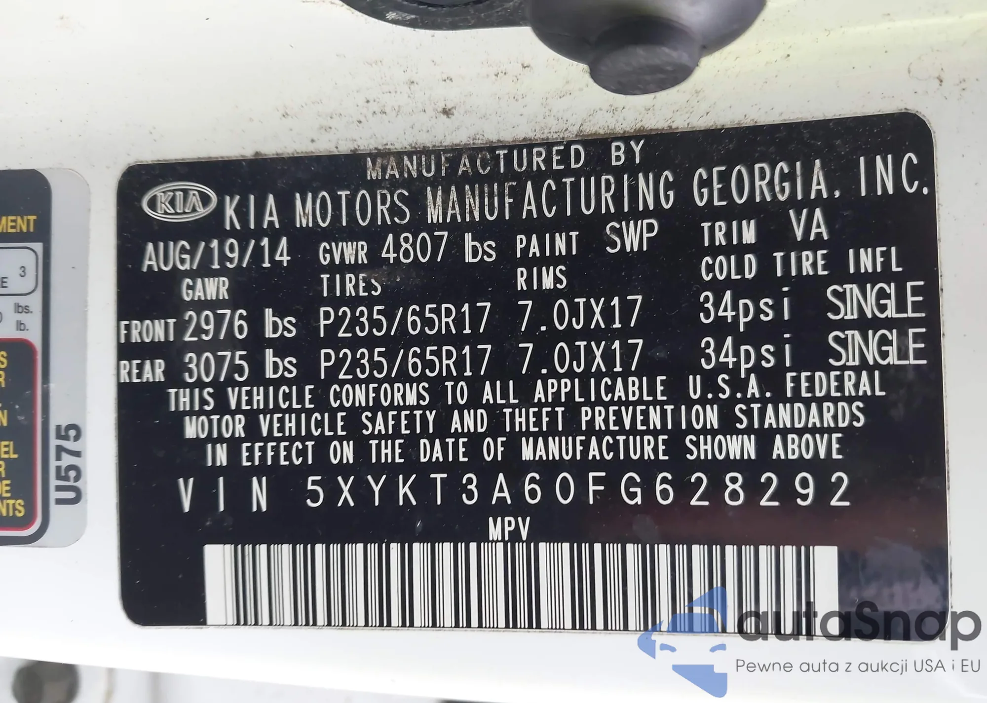 The car Kia Sorento 2015 (VIN 5XYKT3A60FG628292) has not been auctioned before. The documents are clean, and the mileage matches or is below the market average. Sold by an insurance company – we recommend purchase. Delivery to the port will take approx. 6–8 weeks.
