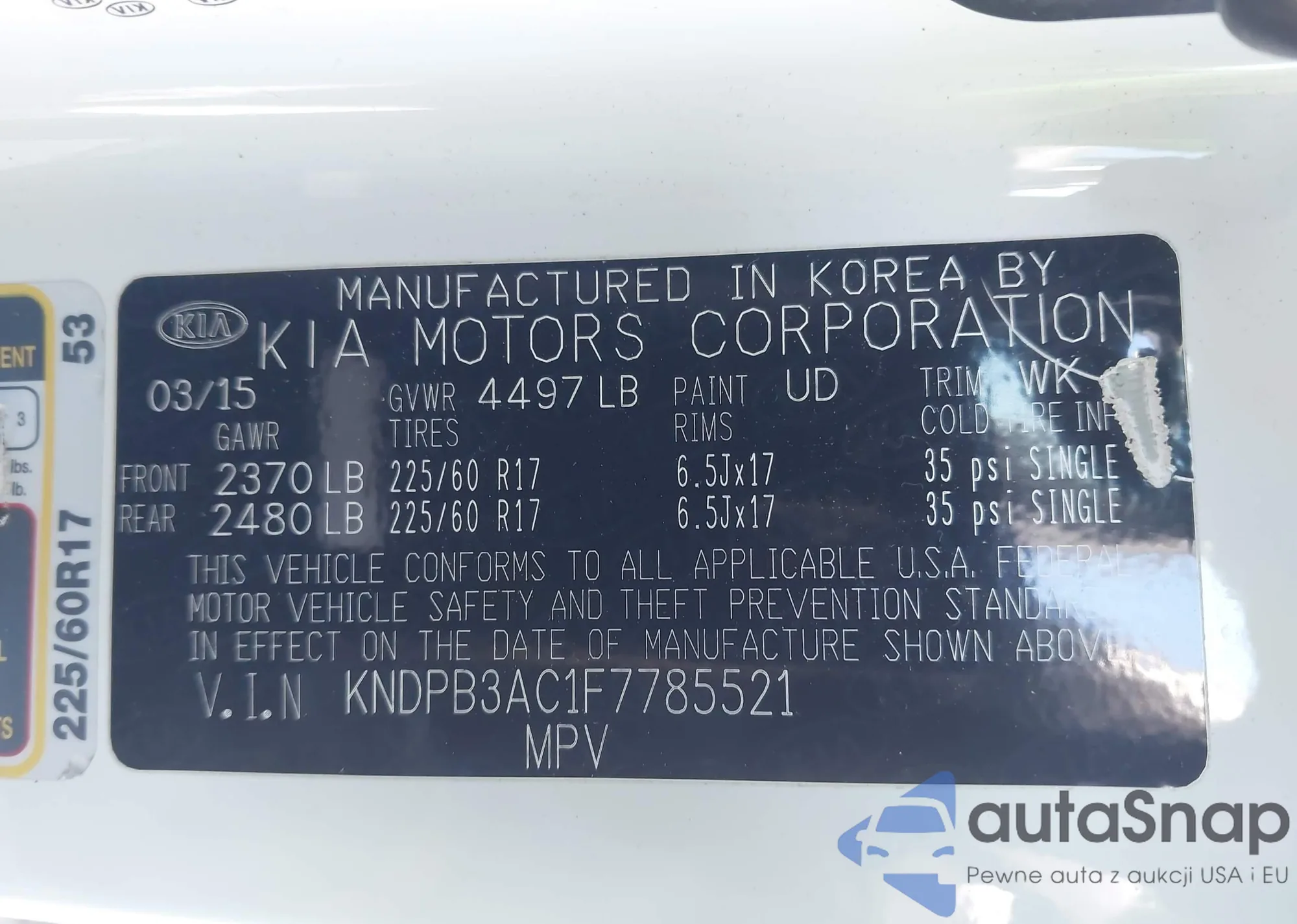 • VIN: KNDPB3AC1F7785521