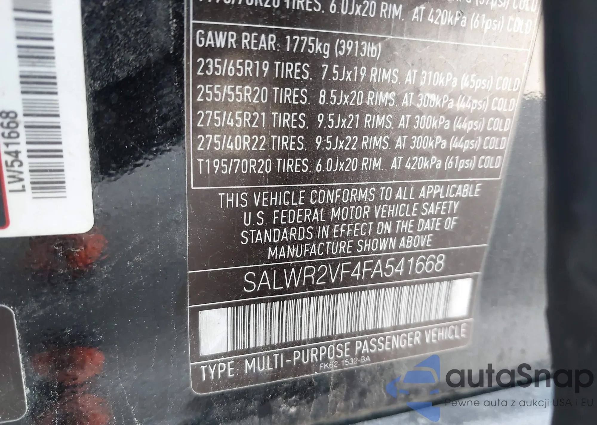 • VIN: SALWR2VF4FA541668