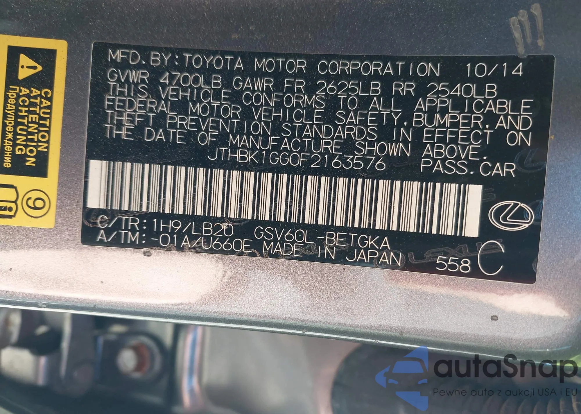 VIN: JTHBK1GG0F2163576