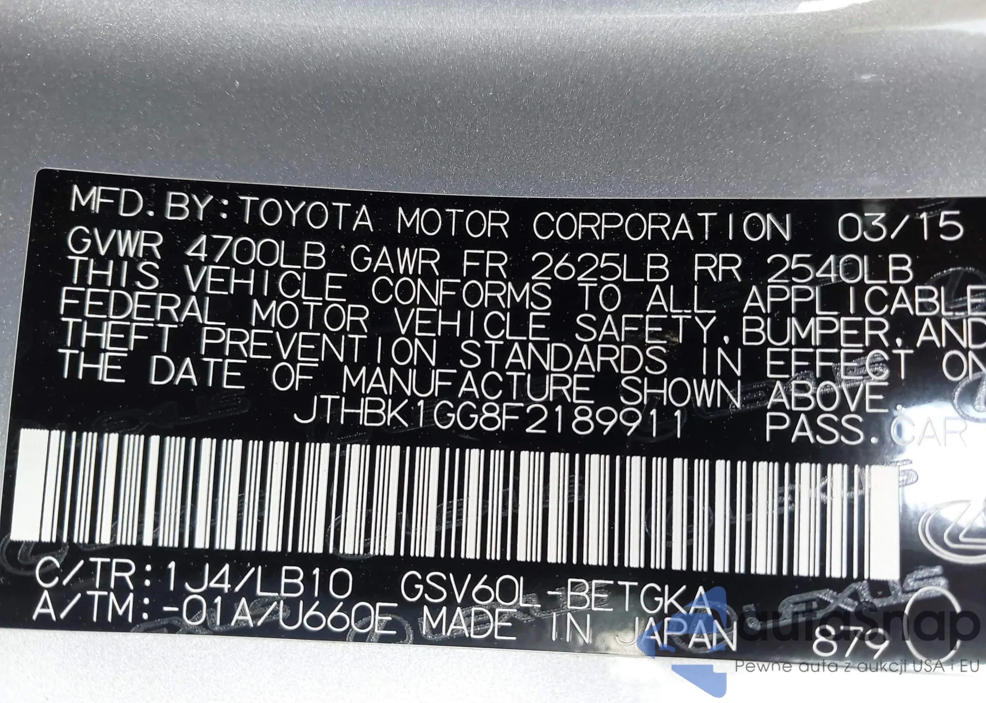 VIN: JTHBK1GG8F2189911