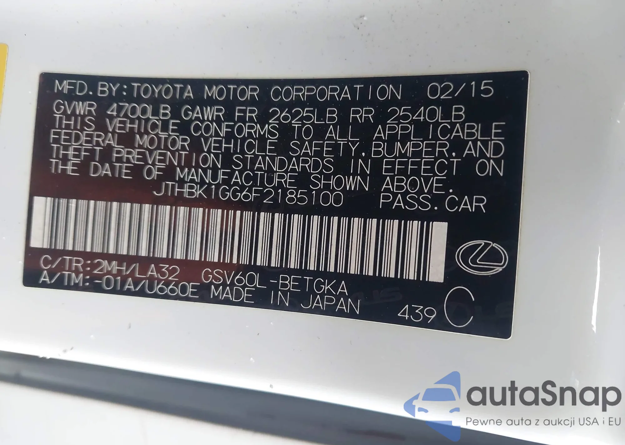 JTHBK1GG6F2185100 IAAI