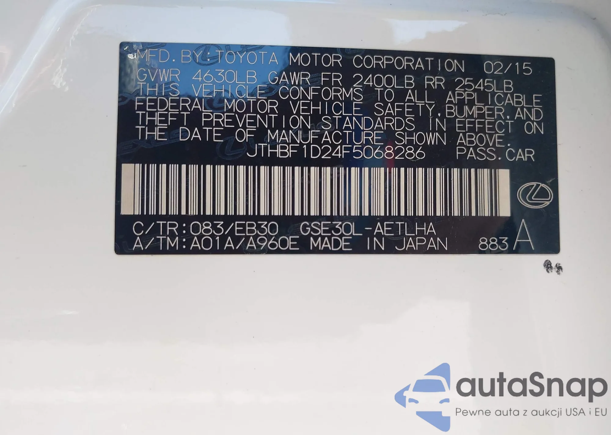 VIN: JTHBF1D24F5068286