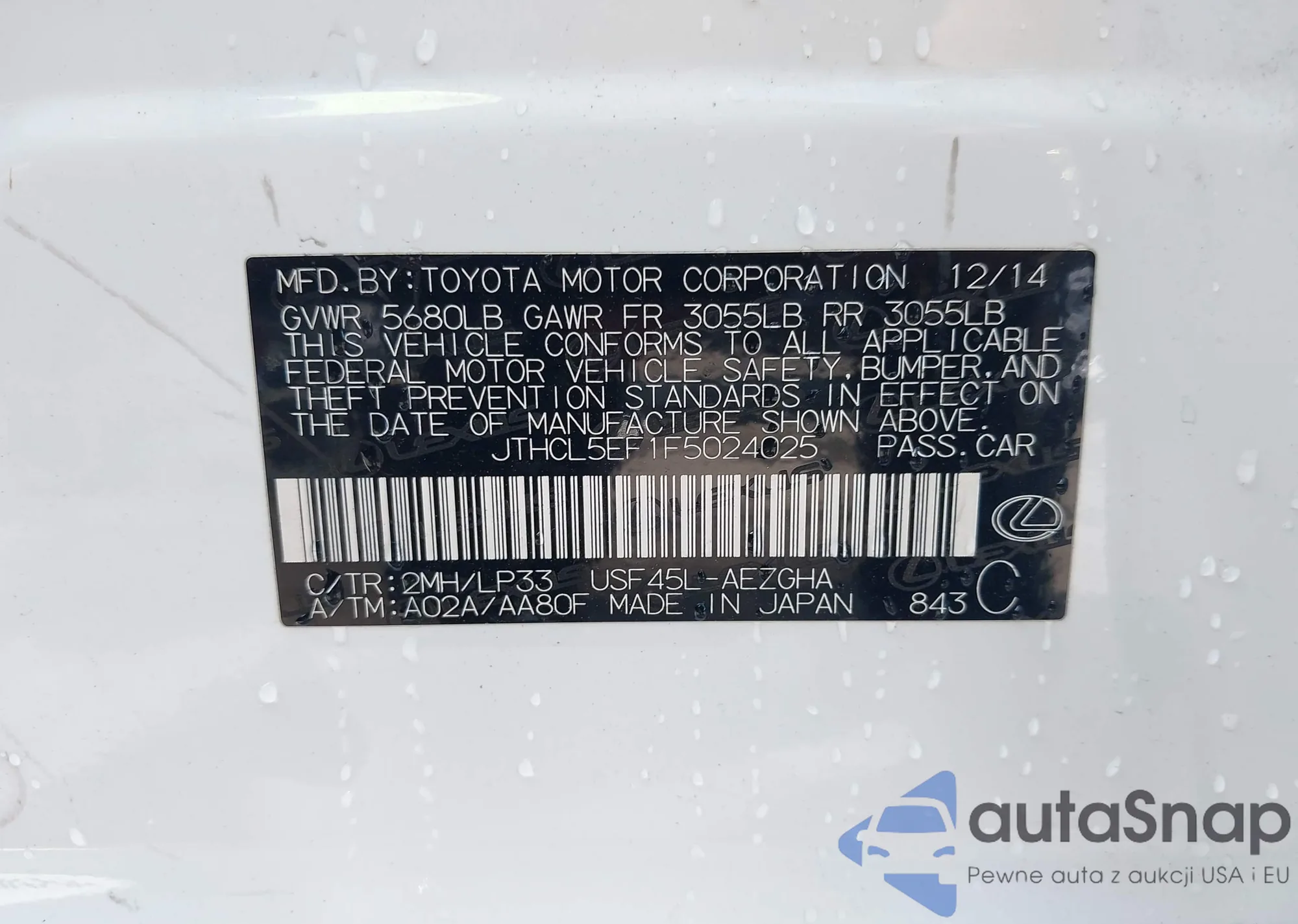 VIN: JTHCL5EF1F5024025
