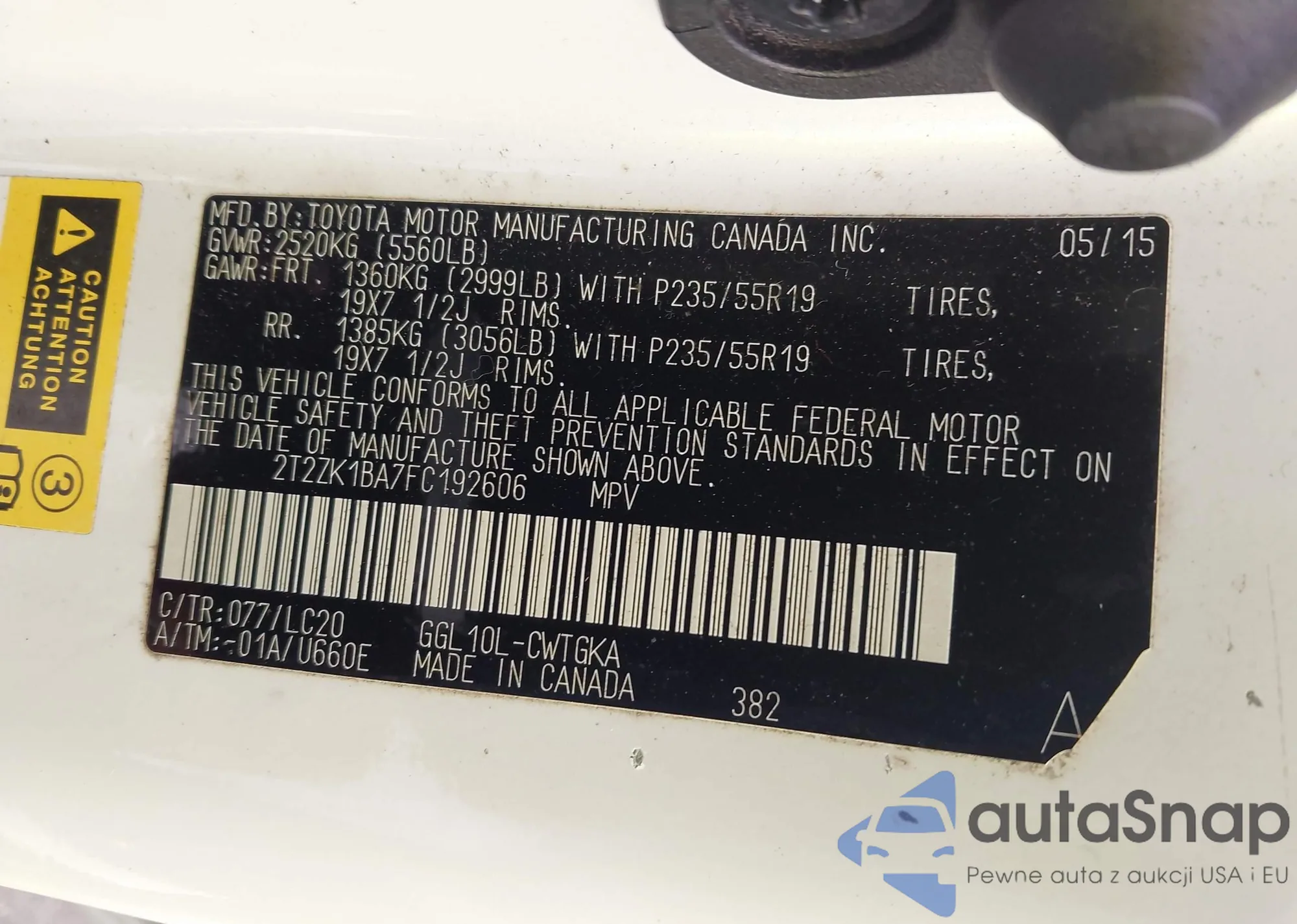 • VIN: 2T2ZK1BA7FC192606