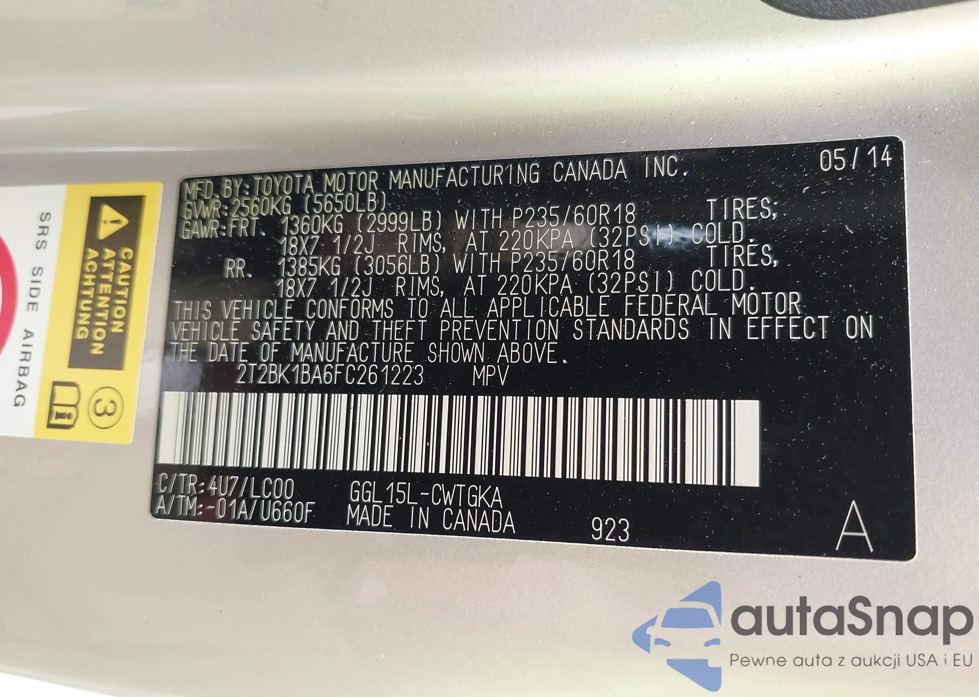 VIN: 2T2BK1BA6FC261223