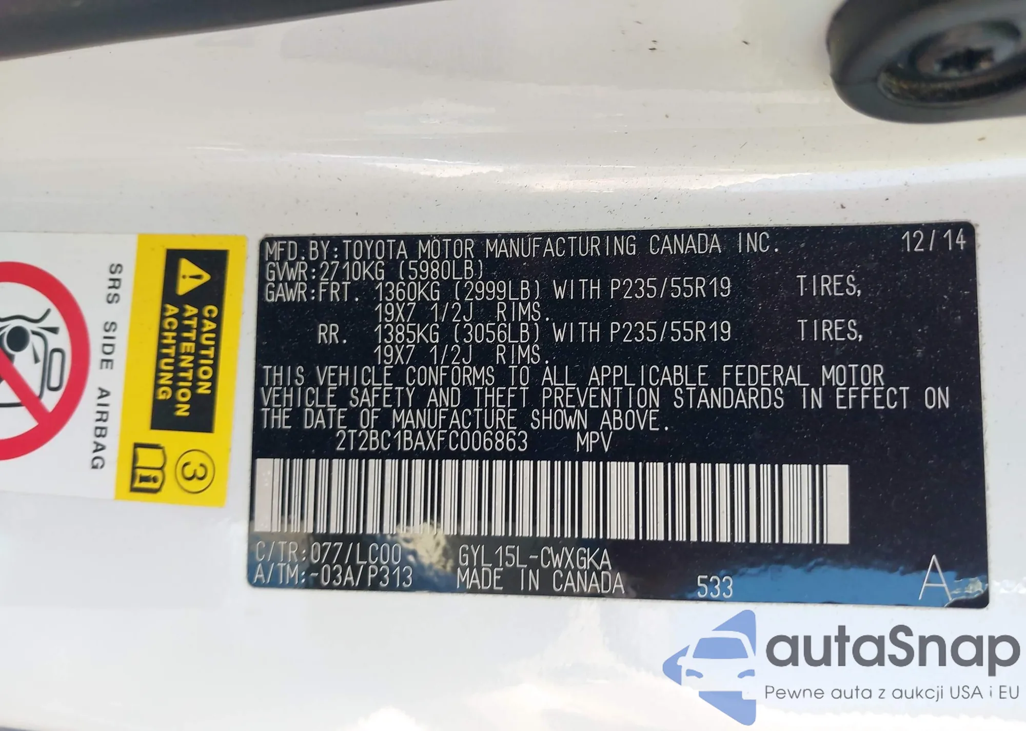 VIN: 2T2BC1BAXFC006863