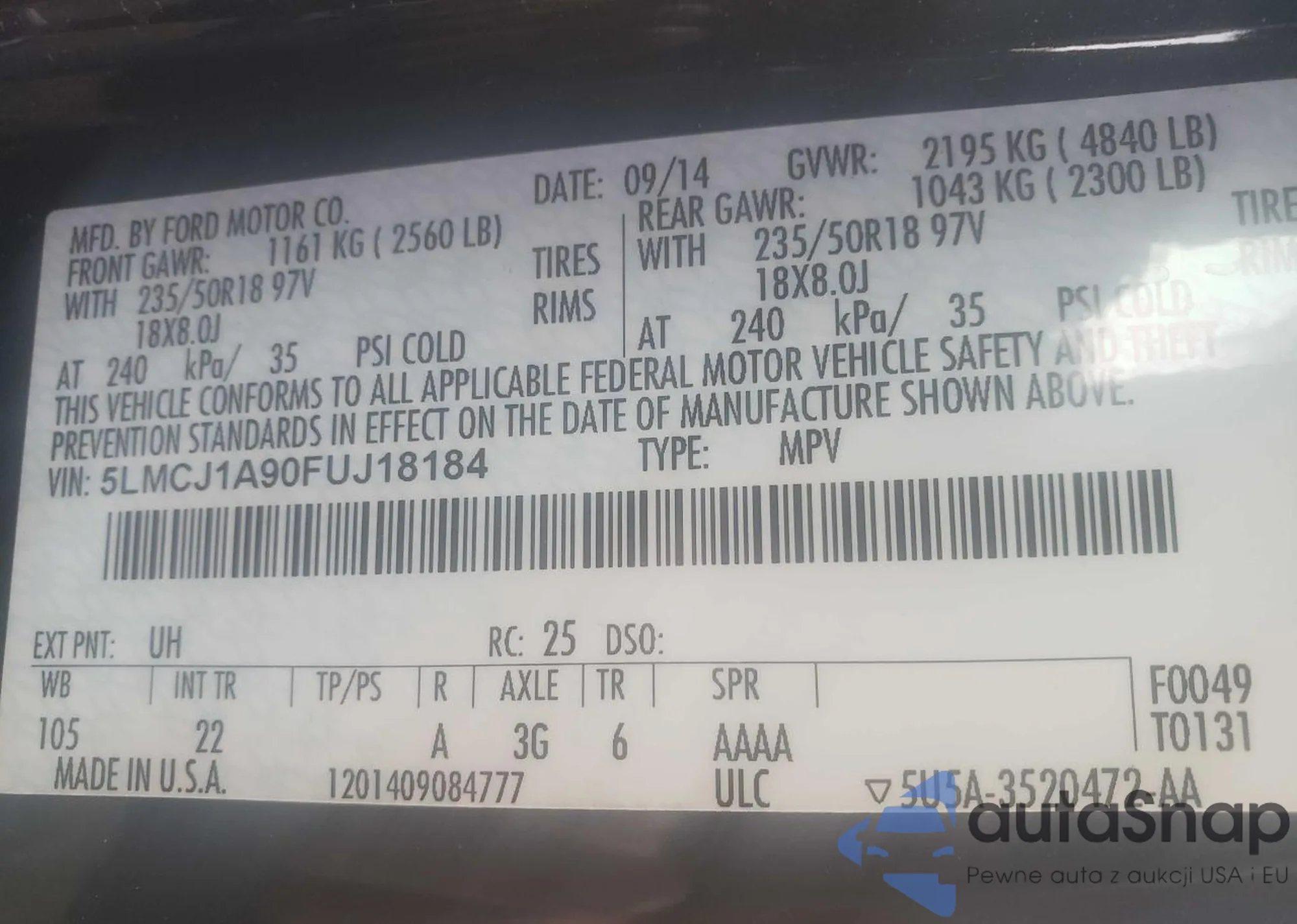 VIN: 5LMCJ1A90FUJ18184