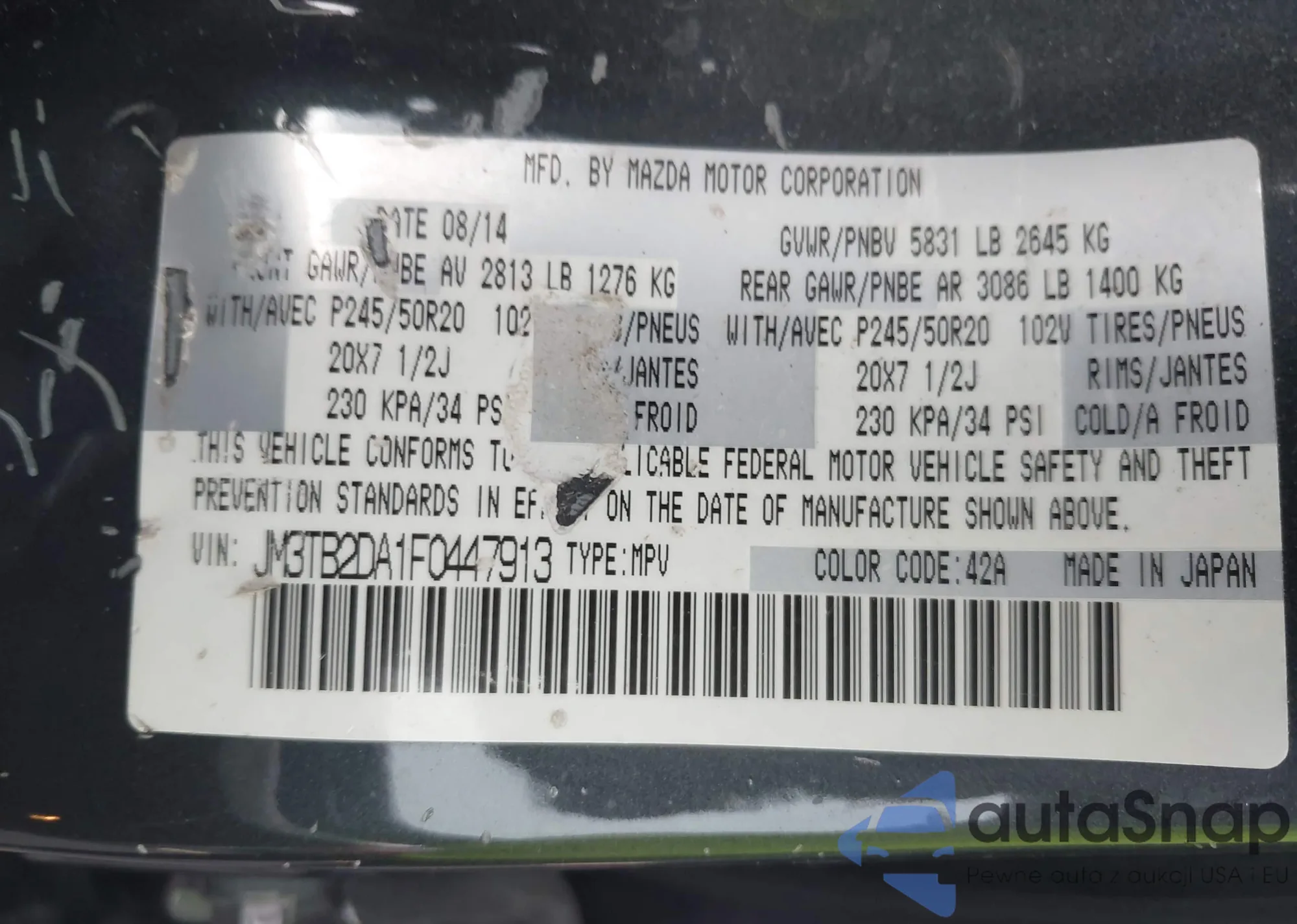 VIN: JM3TB2DA1F0447913