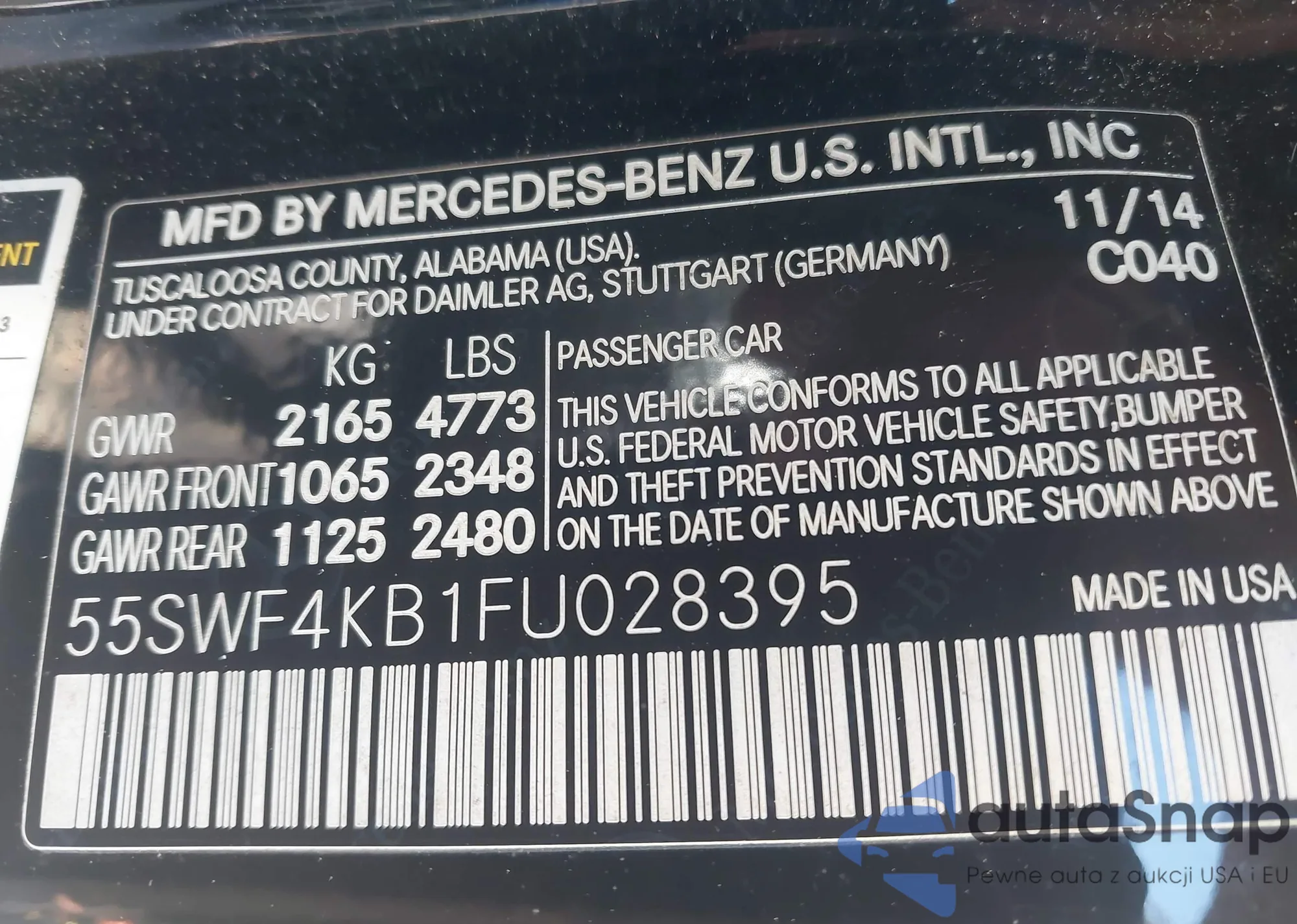 The car Mercedes-Benz C-klasse 2015 (VIN 55SWF4KB1FU028395) has not been auctioned before. The documents are clean, and the mileage matches or is below the market average. Sold by an insurance company – we recommend purchase. Delivery to the port will take approx. 6–8 weeks.
