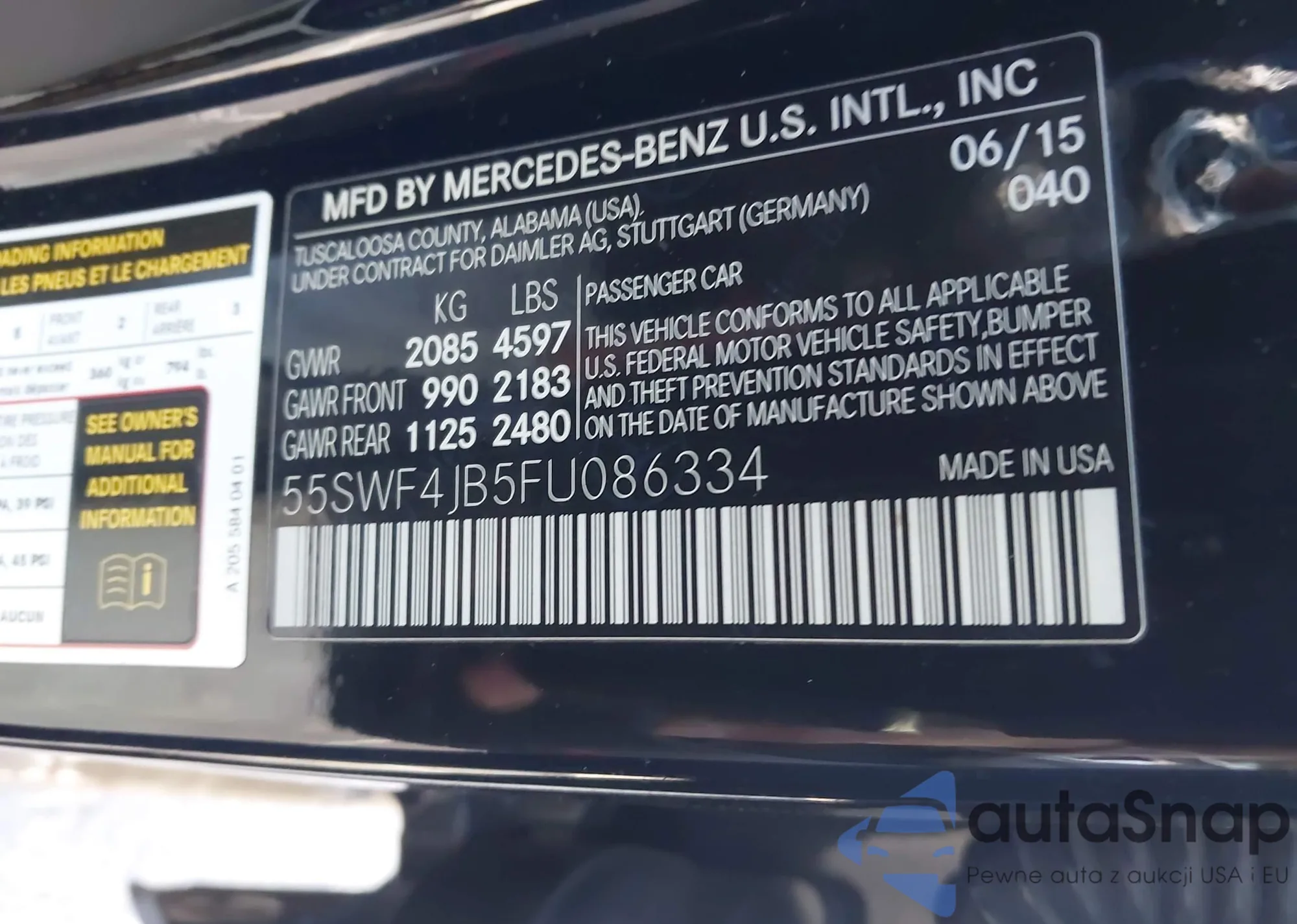 The car Mercedes-Benz C-klasse 2015 (VIN 55SWF4JB5FU086334) has not been auctioned before. The documents are clean, and the mileage matches or is below the market average. Sold by an insurance company – we recommend purchase. Delivery to the port will take approx. 6–8 weeks.