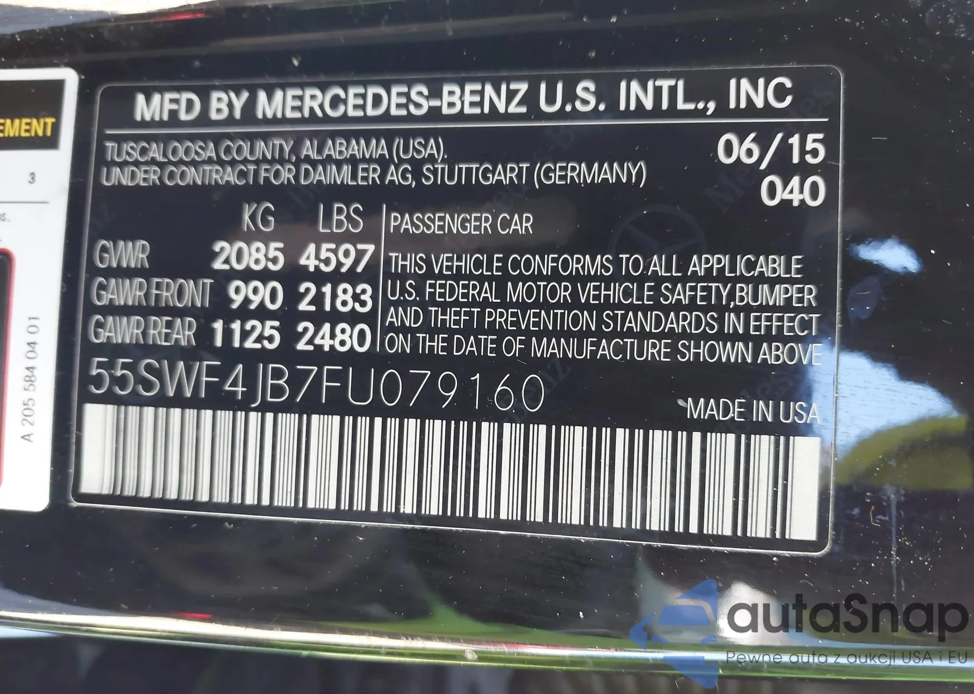 The car Mercedes-Benz C-klasse 2015 (VIN 55SWF4JB7FU079160) has not been auctioned before. The documents are clean, and the mileage matches or is below the market average. Sold by an insurance company – we recommend purchase. Delivery to the port will take approx. 6–8 weeks.