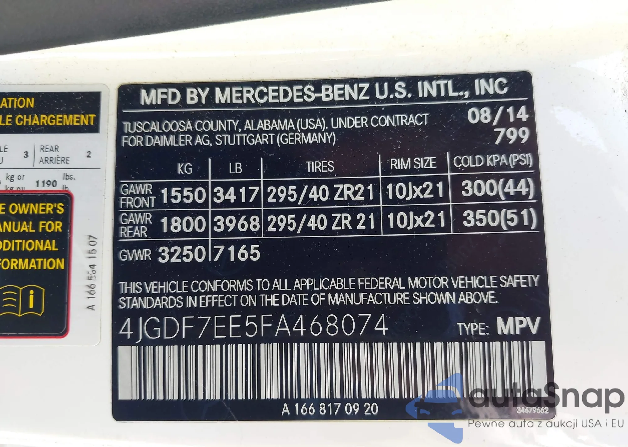 VIN: 4JGDF7EE5FA468074