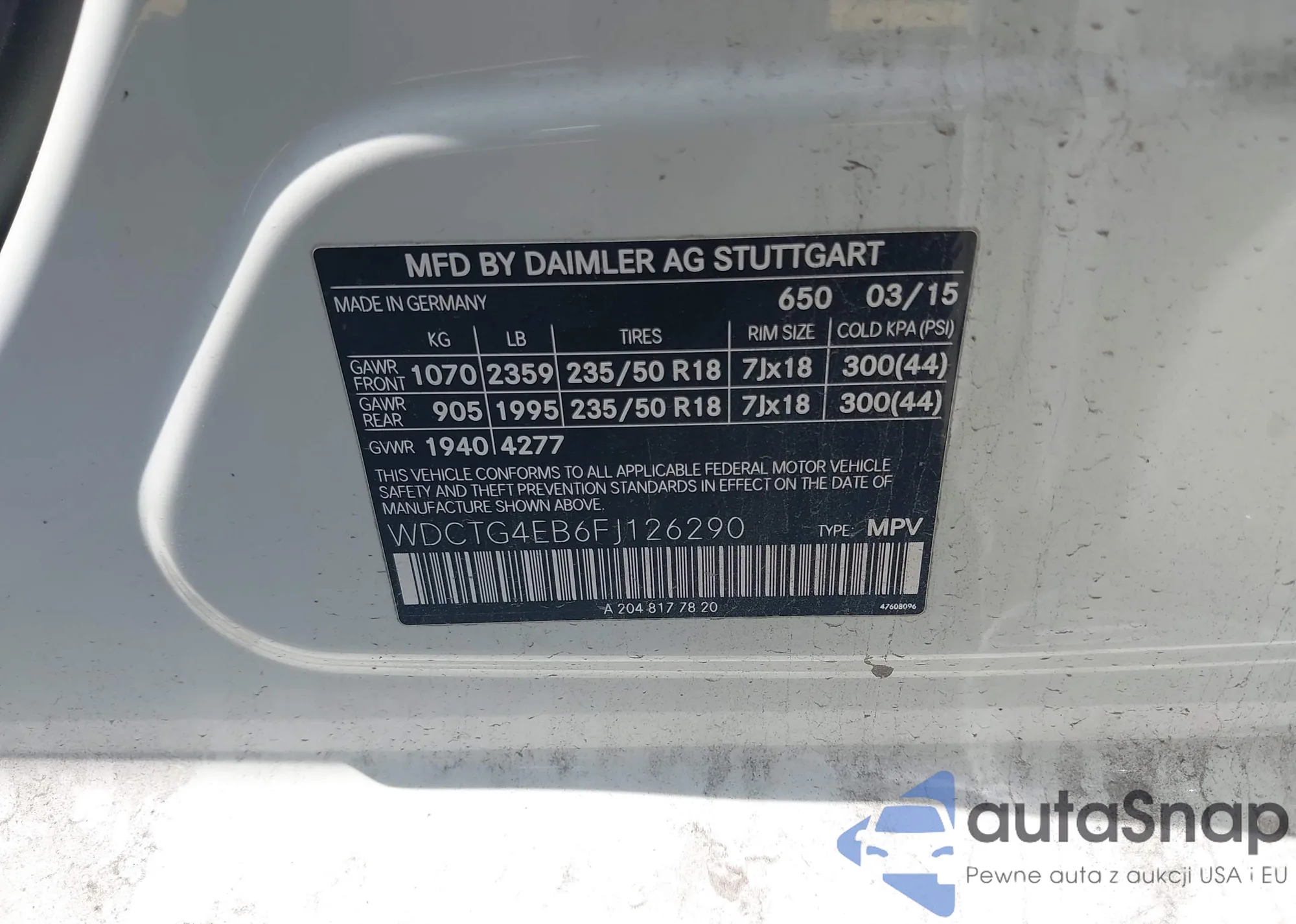 VIN: WDCTG4EB6FJ126290