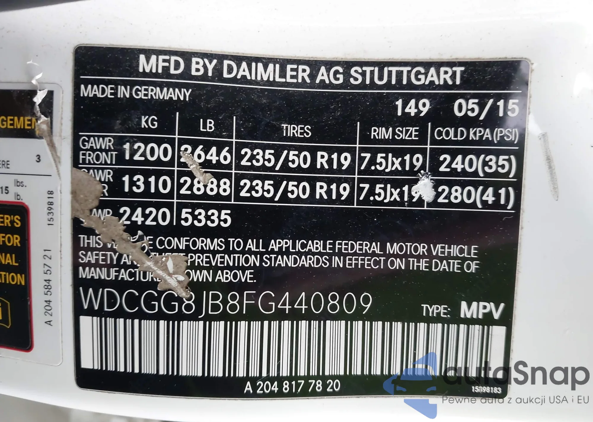 VIN: WDCGG8JB8FG440809