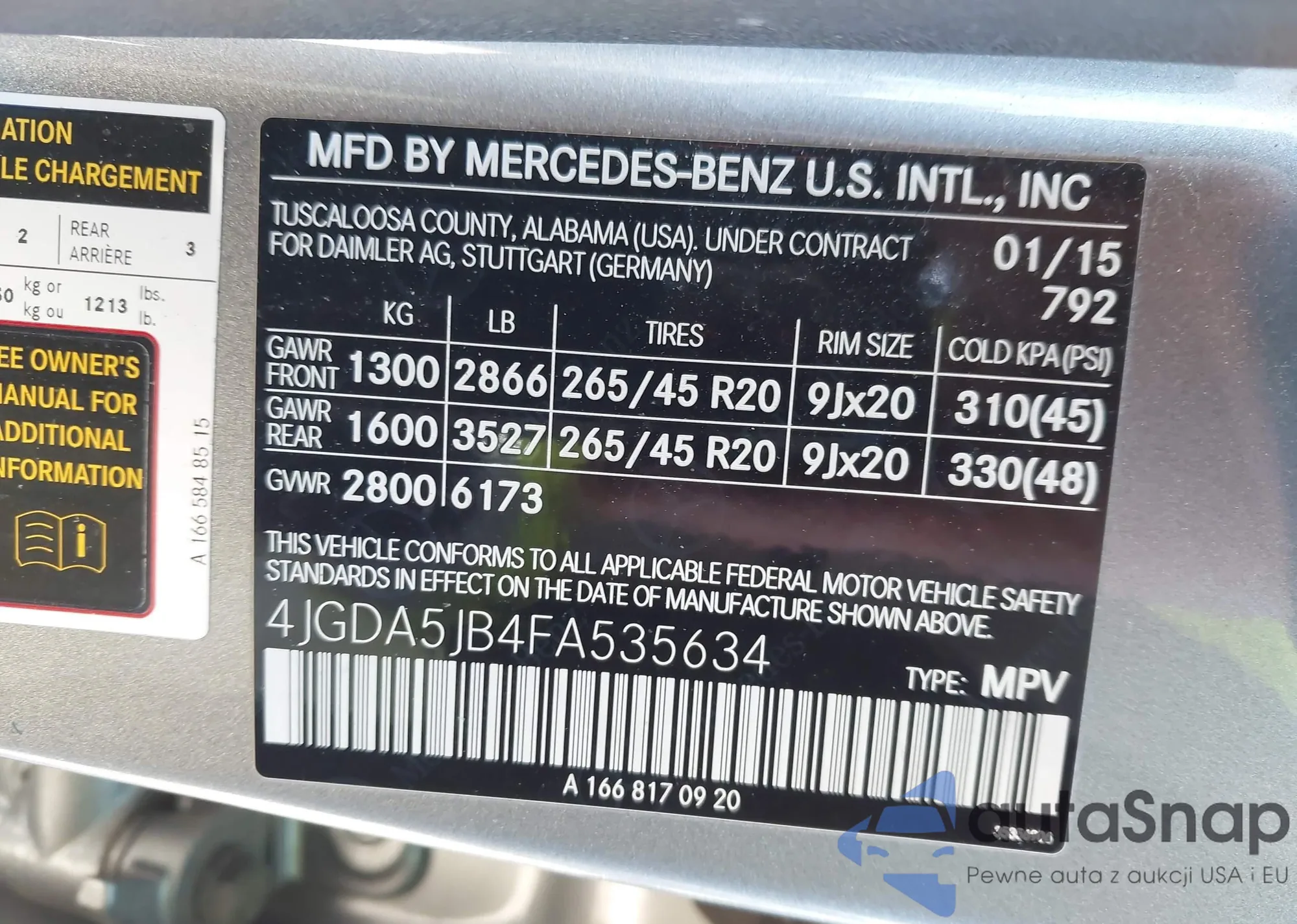 The car Mercedes-Benz M-klasse 2015 (VIN 4JGDA5JB4FA535634) has not been auctioned before. The documents are clean, and the mileage matches or is below the market average. Sold by an insurance company – we recommend purchase. Delivery to the port will take approx. 6–8 weeks.