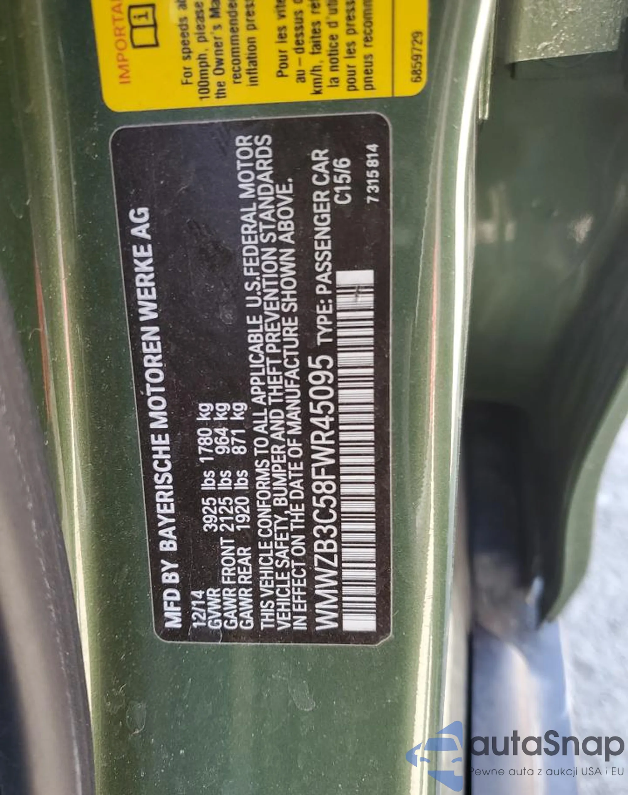 • VIN: WMWZB3C58FWR45095