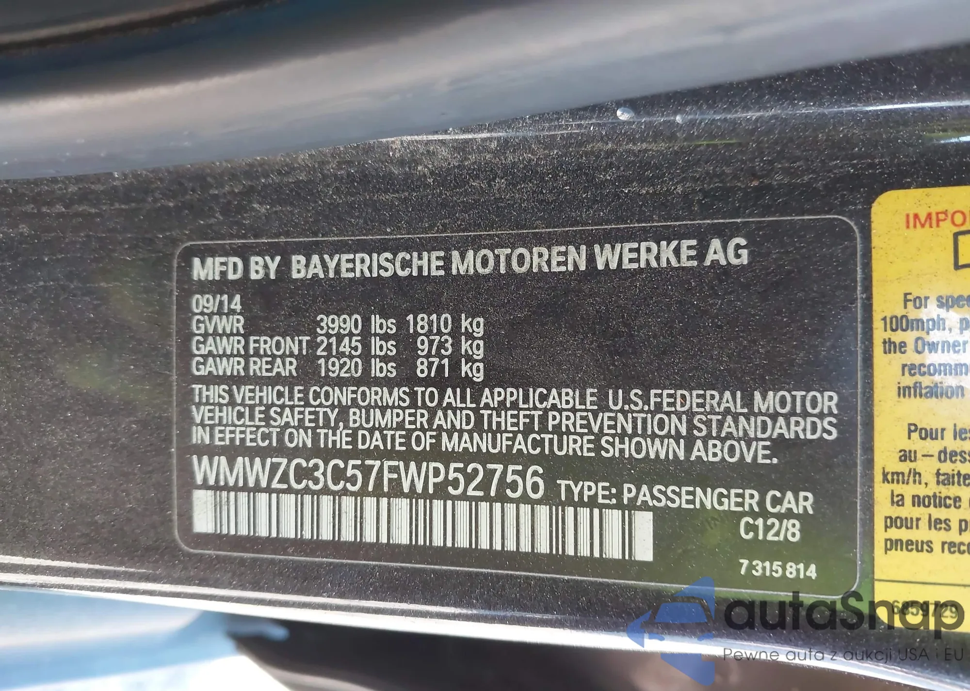 VIN: WMWZC3C57FWP52756