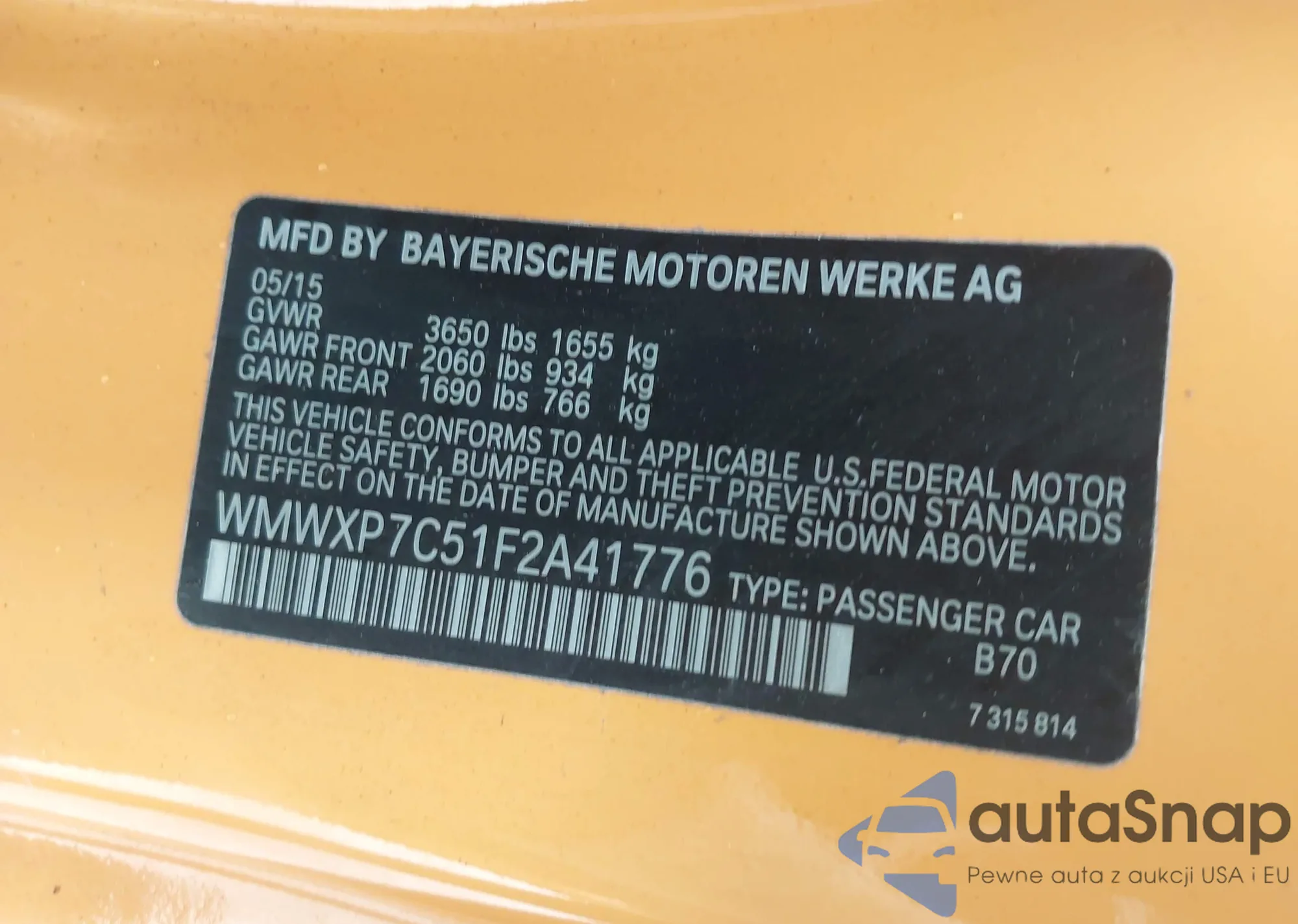 VIN: WMWXP7C51F2A41776