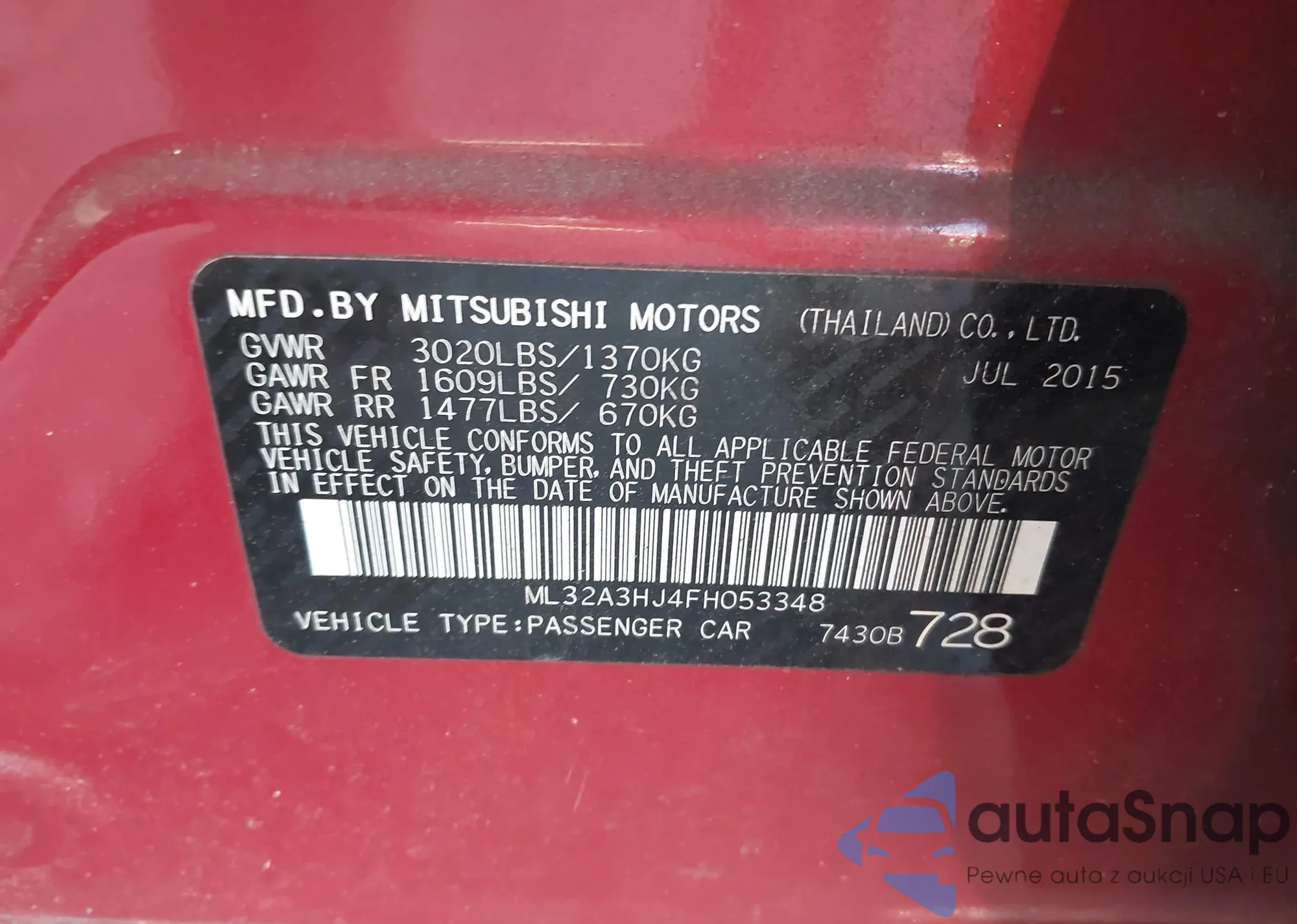Mitsubishi Mirage 2015 – Vehicle History (Sold at IAAI)