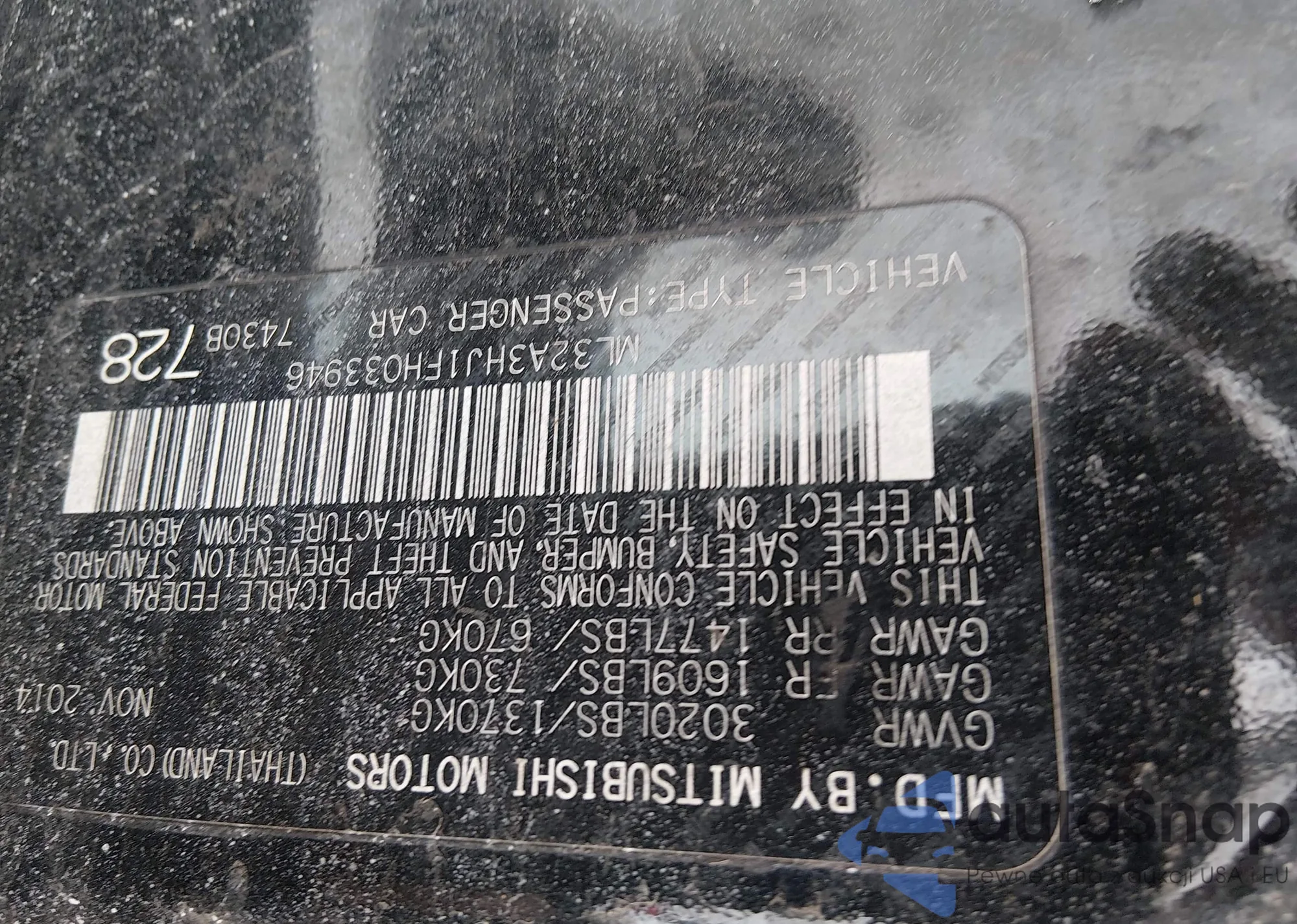 • Make: 2015 Mitsubishi Mirag...