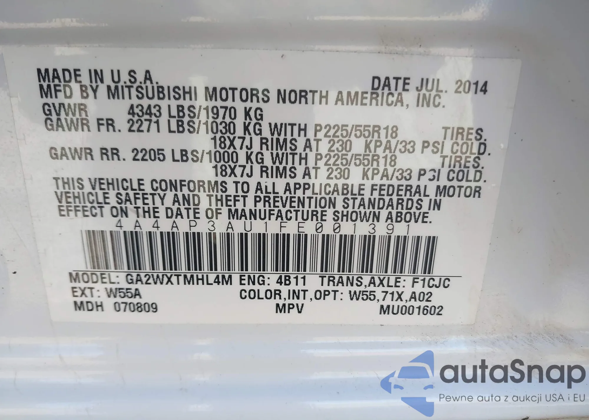 VIN: 4A4AP3AU1FE001391
